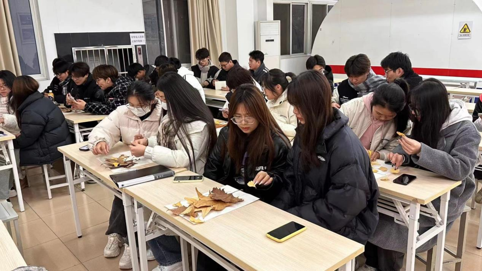 “落红不是无情物,化作春泥更护花。”片片落叶亦有大作为,为进一步丰富校园文化生活,同时也为了培养大学生发现美、热爱美和创造美的能力,12月11日,民用航空系在5109举办“巧手运心,以叶绘美”落叶创作活动,以落叶描绘同学们眼中的“美”。