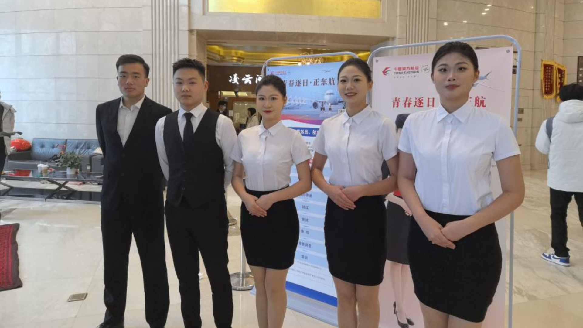 为更好地推动空中乘务专业学生在对口岗位的实习就业工作,12月 18 日,民用航空系专业教师朱枫和施文静带领 22 级空中乘务专业学生前往东方航空江苏有限公司参加空中乘务员招聘面试。