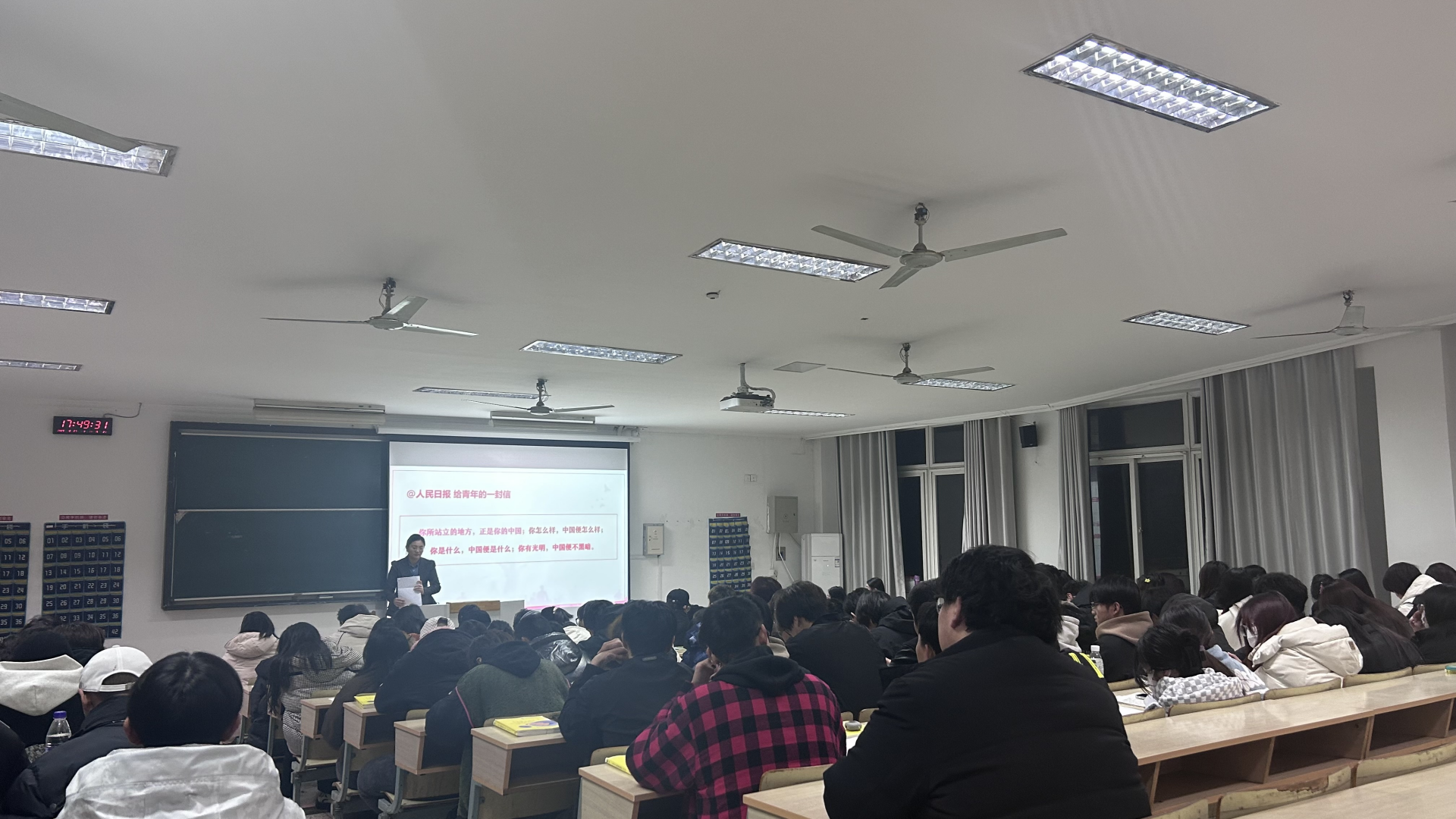 最后于老师针对学生日常学习生活中的表现提出要求,发出号召,引导学生争做“有理想、敢担当、能吃苦、肯奋斗”的新时代青年,为全面建设社会主义现代化国家,为继续推进中华民族伟大复兴,贡献更多的力量。