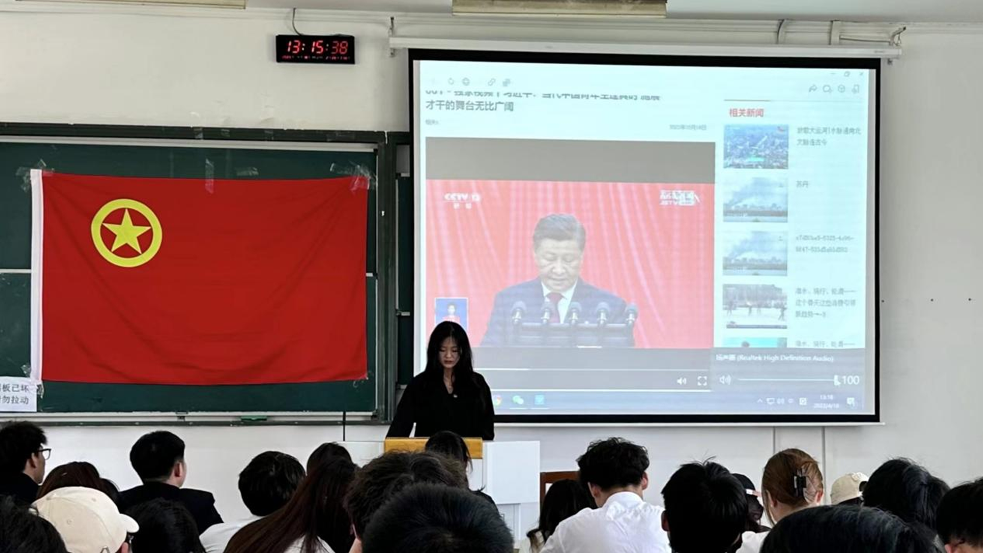 回望百年,青春向党,青年是这个时代蓬勃发展的重要力量。为深入学习贯彻习近平新时代中国特色社会主义思想,引导同学们不断锤炼政治品格,坚定对党的信仰,强化责任担当,切实履职尽责,4月19日在1303教室组织各班团员集体观看习近平总书记关于青年、教育重要讲话视频并开展交流发言,引导大家坚定理想信念、矢志青春向党,勇担时代责任、奋力拼搏进取。会议最后团总支书记陈瑶老师传达学习共青团江苏省第十六次代表大会精神。