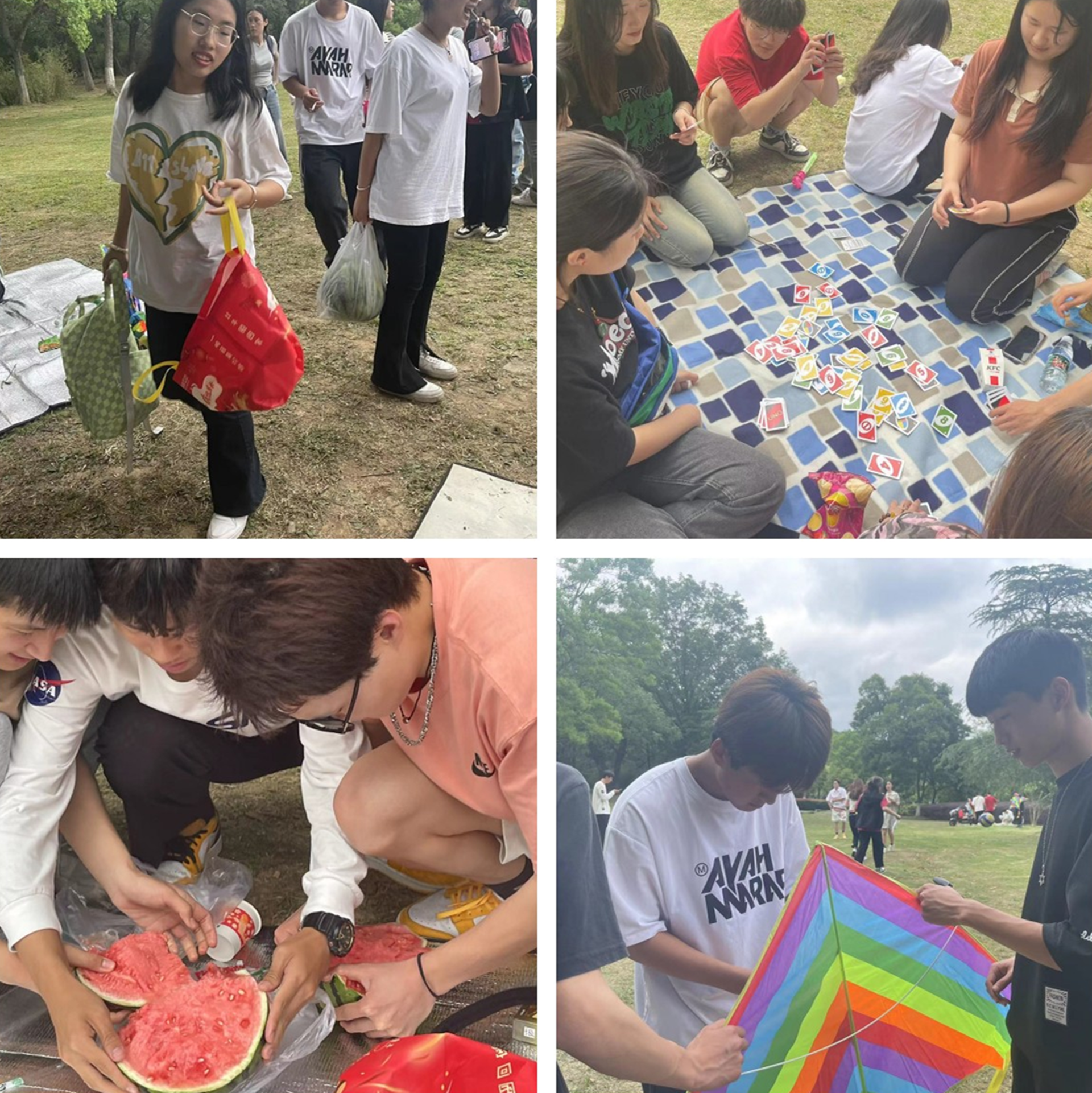 拓展活动安排了丰富的趣味游戏,经过激烈的比赛,让大家深刻的体会到了团队协作的重要性。随着现场音乐的摇摆律动,活动氛围到达了高潮。同学间互相分享食物,现场笑声不断,营造了良好的活动氛围,呈现出一片健康向上、团结一致的美好画面。