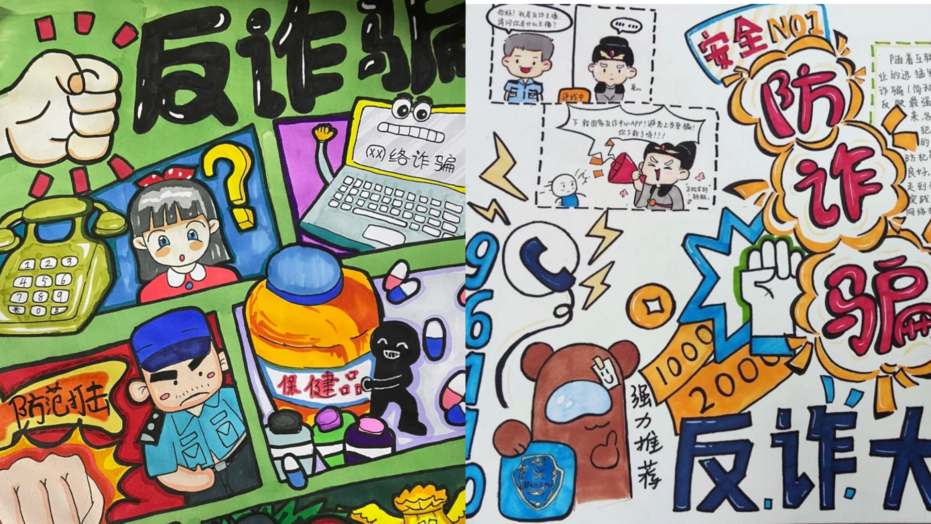 系部还组织了防诈骗手抄报活动。同学们积极参与,围绕电信网络诈骗犯罪宣传这一主题,大胆发挥想象力,以独特的视角精心创作出一幅幅内容丰富,形式多样、寓意深刻的手抄报。