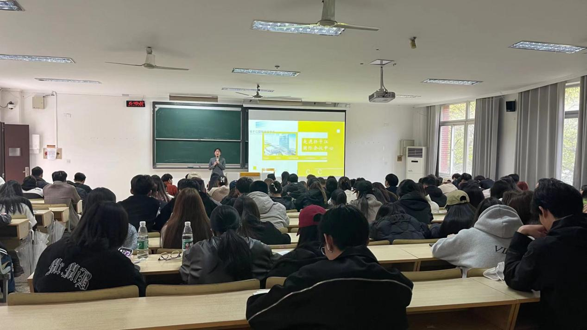 促进毕业生实习就业,落实实习就业工作要求,民用航空系4月3日邀请扬子江国际会议中心人事来系进行招聘专题宣讲,我系21级空中乘务专业学生参与活动。