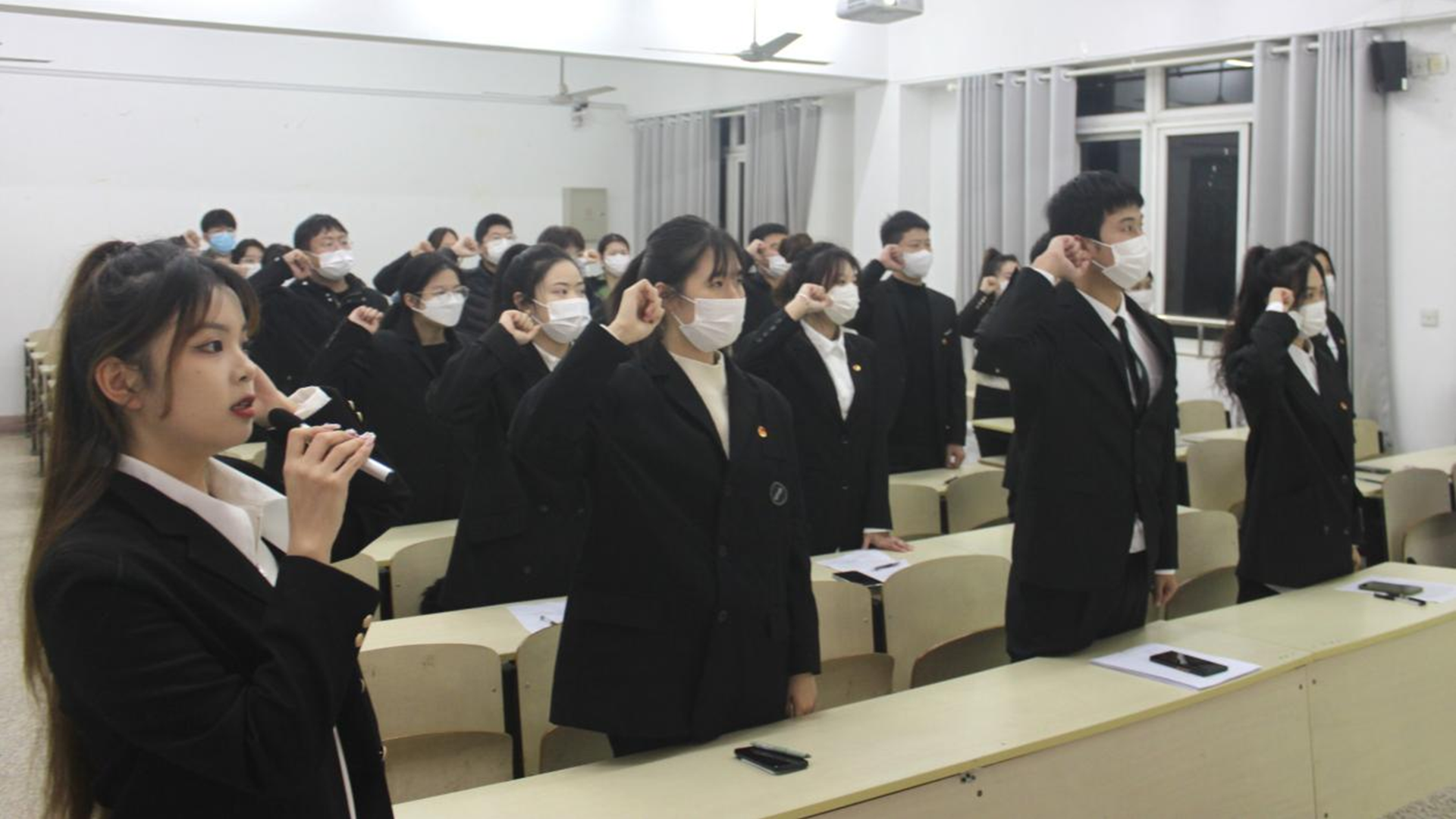 会议伊始,全体同志奏唱中国共产主义青年团团歌,团支书殷淑琦同志围绕本学期团支部组织的活动开展情况与取得效果作报告。接着组织委员陈艺婷、宣传委员张琦以及学习委员王鹤默依次发言,他们回顾了本学期自身工作的开展情况,总结经验,并真诚反思自身工作的不足,并代表各小组做总结发言,他们选取本组同学会前感悟中的关键词,对其中内容进行提炼。他们的发言感情真挚,内容充实,使得同学们进一步加深了对党的二十大精神的认识和理解,进一步坚定了自己的理想和信念。然后全体团员进行民主测评投票,团支书殷淑琦同志公示本学期优秀团员的评选标准以及青年大学习的完成情况、团支部活动的参与次数等。投票结束后选出7名优秀团员,并带领全体团员重温入团誓词。