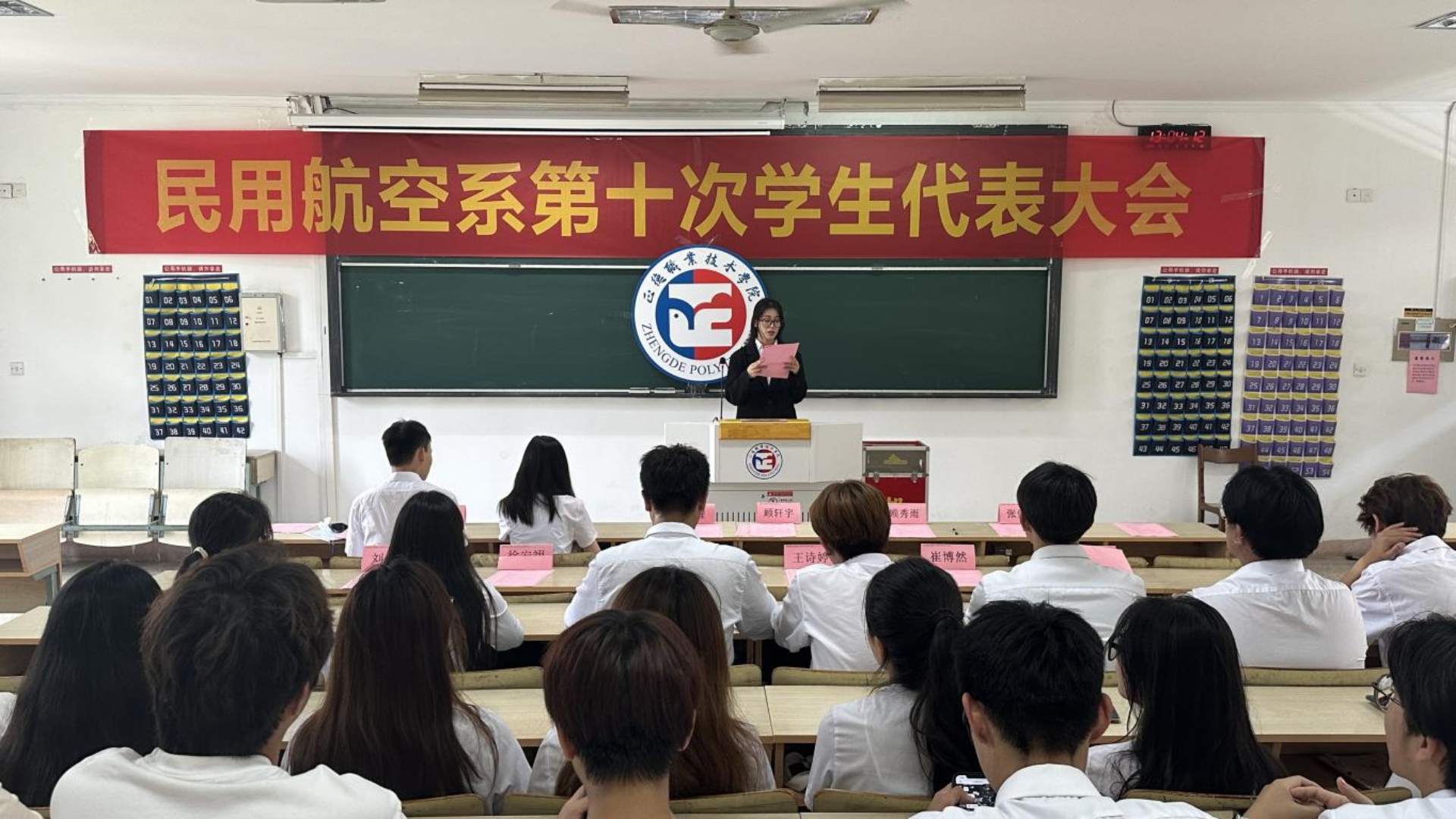 民用航空系党支部书记查理、暂代团总支书记、大会秘书长顾轩宇、院学生会主席团成员刘一博、兄弟系部学生会执行主席贡泽阳和我系学生代表参加会议。会议由第九届民用航空系执行主席张俊杰主持。