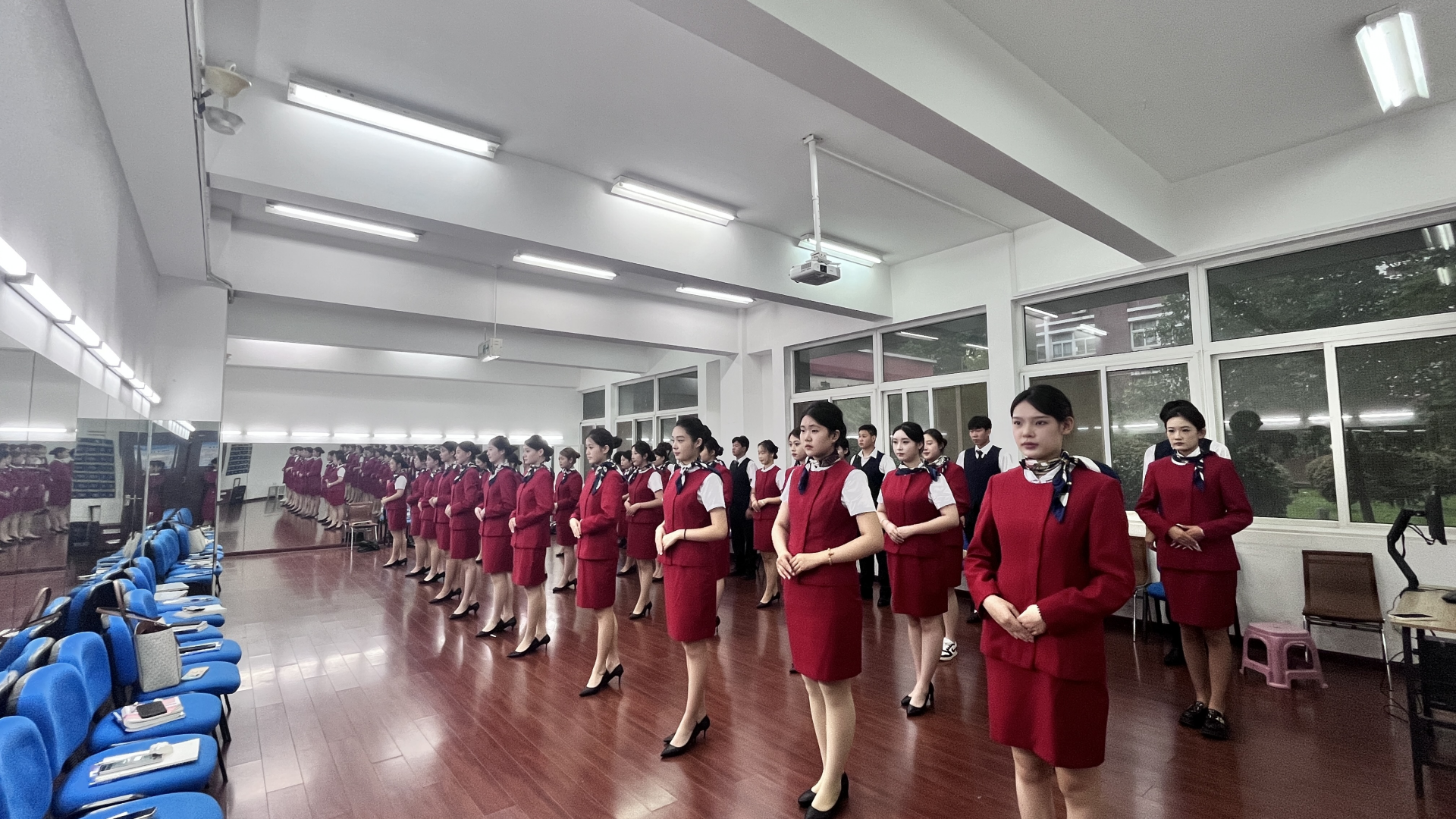 为了提升中高职一体化空中乘务专业学生的综合素质以及面试技能,我系空中乘务专业于9月11日在5109-B教室进行了模拟面试现场。