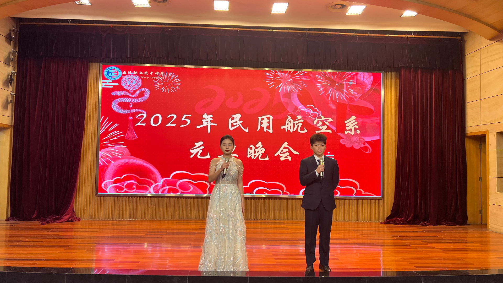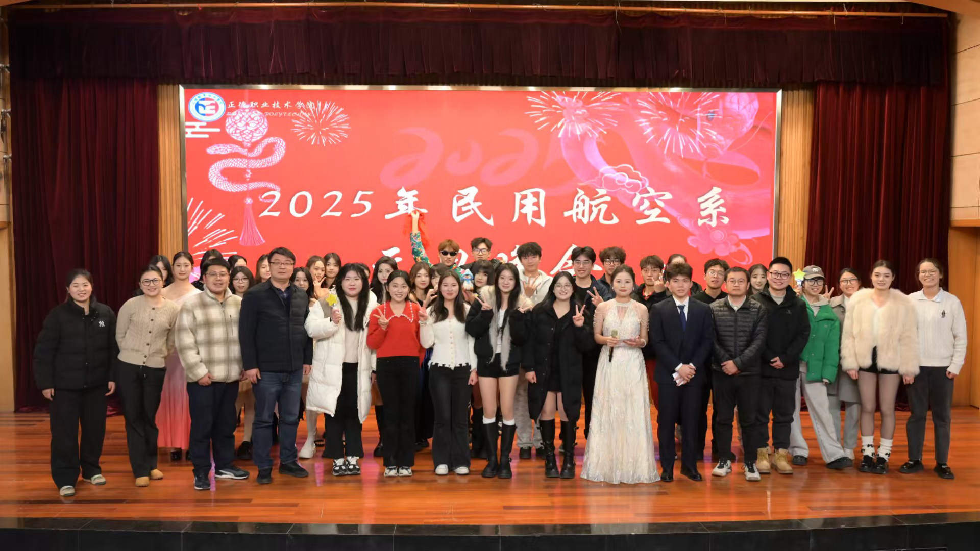 旧岁已展千重锦,新年再进百尺竿。12月26日晚,“灵蛇献瑞 奔赴新愿”2025年民用航空系元旦晚会在学院报告厅举办。院团委书记黄晓帆、副书记魏兴彪、系党支部书记查理、系团总支书记陈瑶瑶、系部老师及辅导员到场观看演出。晚会由陆靖和郭治言主持。