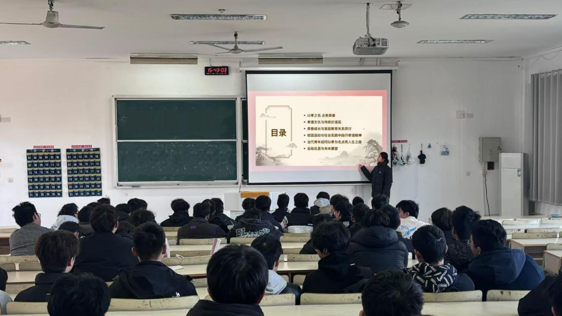 为弘扬中华传统孝道,培育学生感恩之心,户外露出 民用航空系于12月17日在1303教室举办“以孝之名,点亮青春”主题班会,本次感恩主题班会由吴程彦同学主讲,旨在引导学生在青春时光领悟孝道真谛,让感恩成为成长底色。2024级全体学生参加了此次活动。