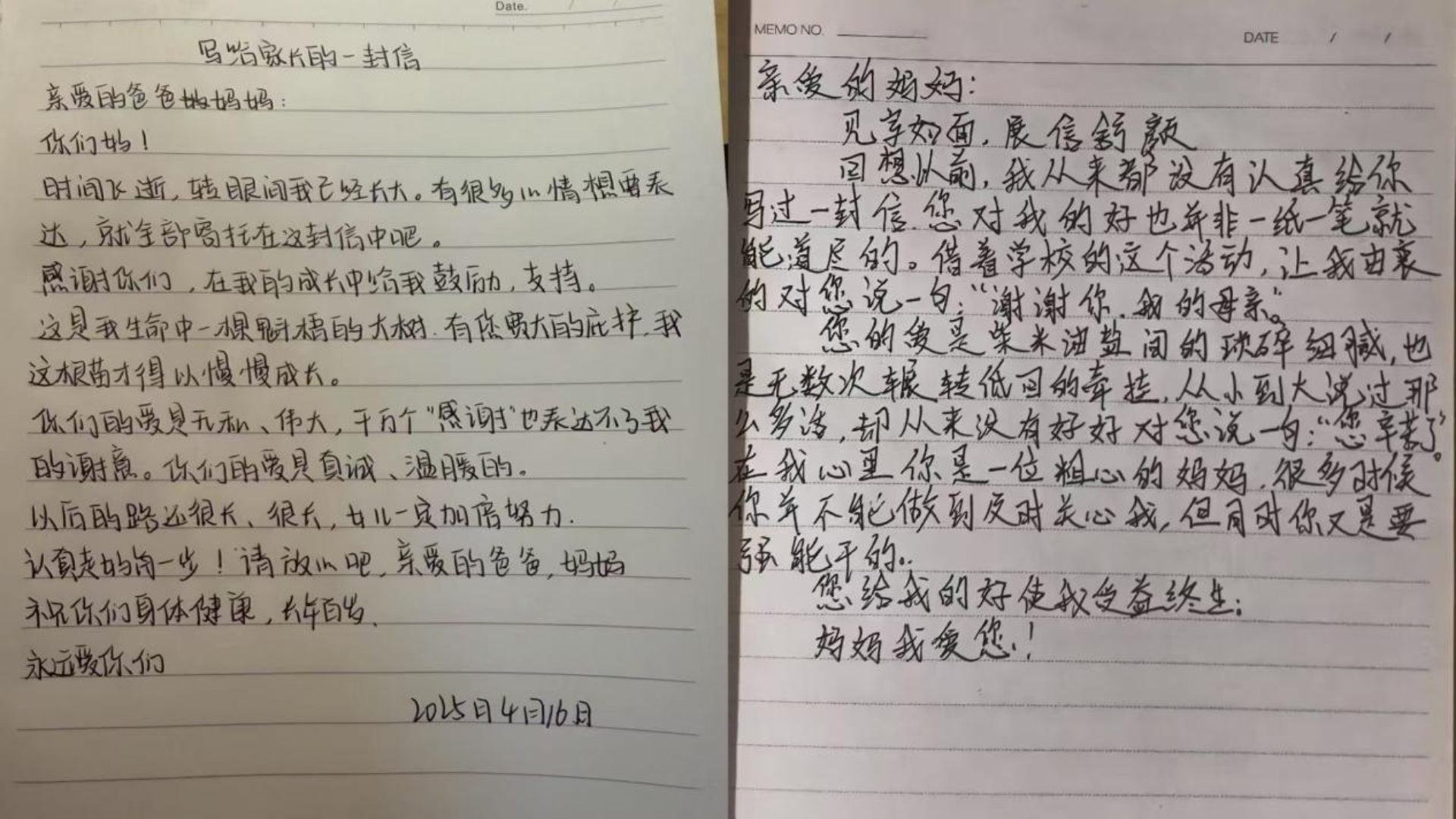 一封小小的家书,传递着情怀;一方小小的信笺,承载着感恩。在这个生机盎然、万物复苏的四月,为弘扬中华民族传统美德,促进孩子与家长之间的沟通交流,助推家校共育,民用航空系于四月中旬开展“一封家书,情满心间”活动。