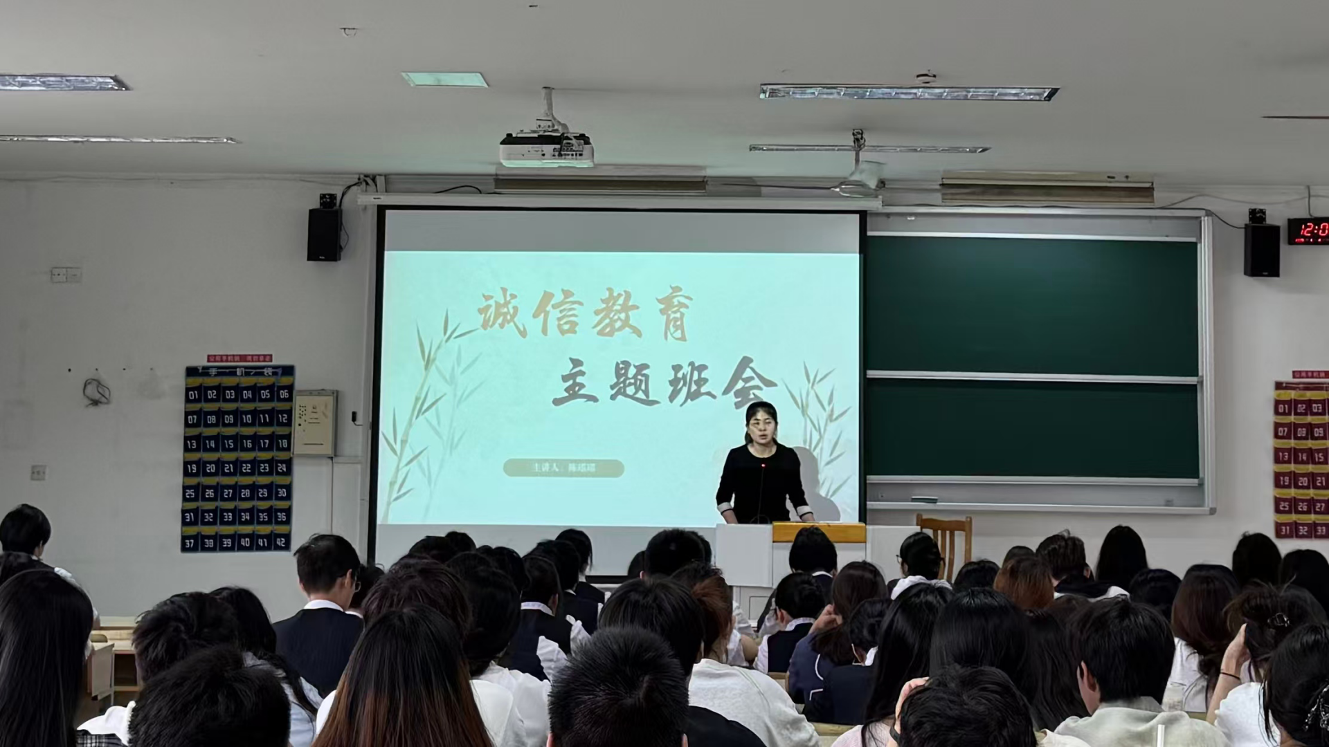 班会上,辅导员陈瑶瑶充分发挥主导作用,以丰富多样的形式开展诚信教育。首先,通过分享往届考试中出现的真实违纪案例,详细剖析了考试作弊的严重后果,包括成绩取消、纪律处分,甚至影响个人学业和未来发展等,让同学们深刻认识到诚信考试的重要性。随后,辅导员结合案例和视频内容,进一步深入讲解了大学英语四六级考试的考试规则、考场纪律以及学校的相关规章制度,强调了诚信考试不仅是对知识的尊重,更是对个人品德和道德底线的坚守。