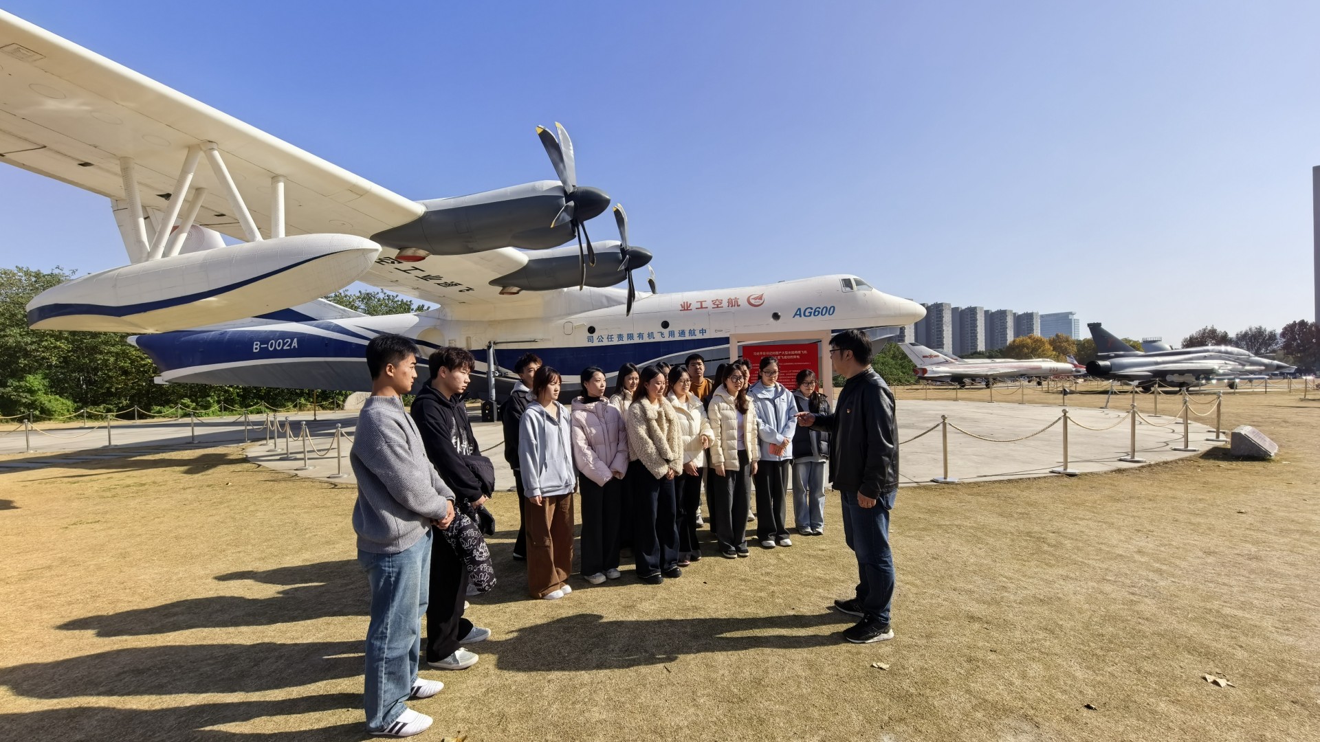 御风园作为南航重要的航空文化教育基地,集中展示了我国航空领域从仿制到自主创新的辉煌成就。活动中,师生们依次参观了园内陈列的初教-5教练机、米格-15战斗机、歼-8系列战斗机的运-5运输机、AG600“鲲龙”大型水陆两栖飞机、FC-1“枭龙”双座战斗机等标志性展品。通过珍贵的实物展陈,参加活动的师生系统了解了我国航空工业从“跟跑”到“并跑”乃至部分领域“领跑”的跨越式发展,深刻体会到“忠诚奉献、逐梦蓝天”的航空报国精神。