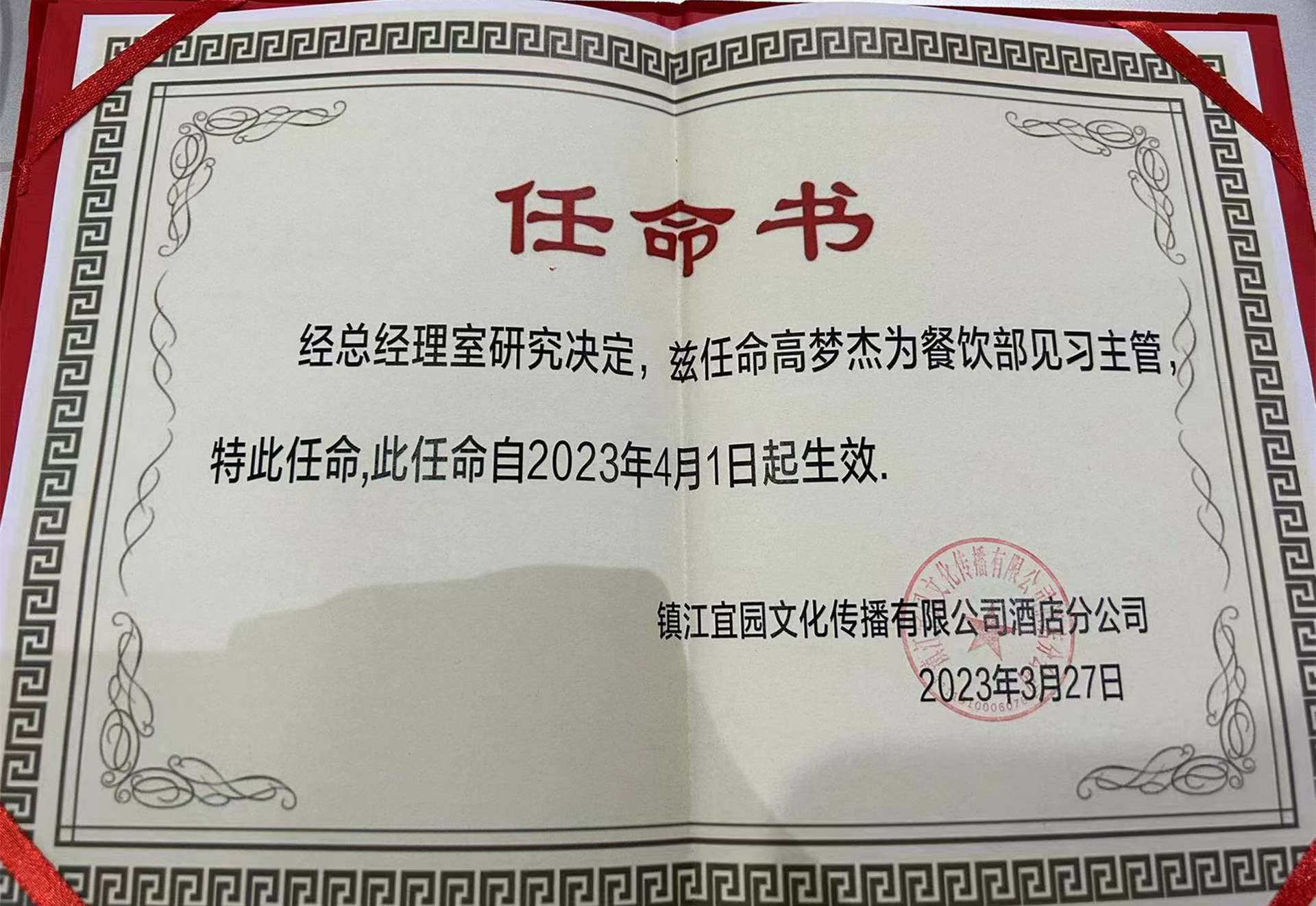 高梦杰是户外露出 民用航空系空乘专业2020级学生。在校期间,她认真对待每一门课程,用心掌握每一项专业技能知识。2022年进入镇江宜园酒店实习,工作认真勤奋、吃苦耐劳、尽职尽责。实习结束后顺利被镇江宜园酒店录用,在“2022年度优秀员工表彰大会”中获得了“优秀服务奖”并且被任命为餐饮部见习主管。