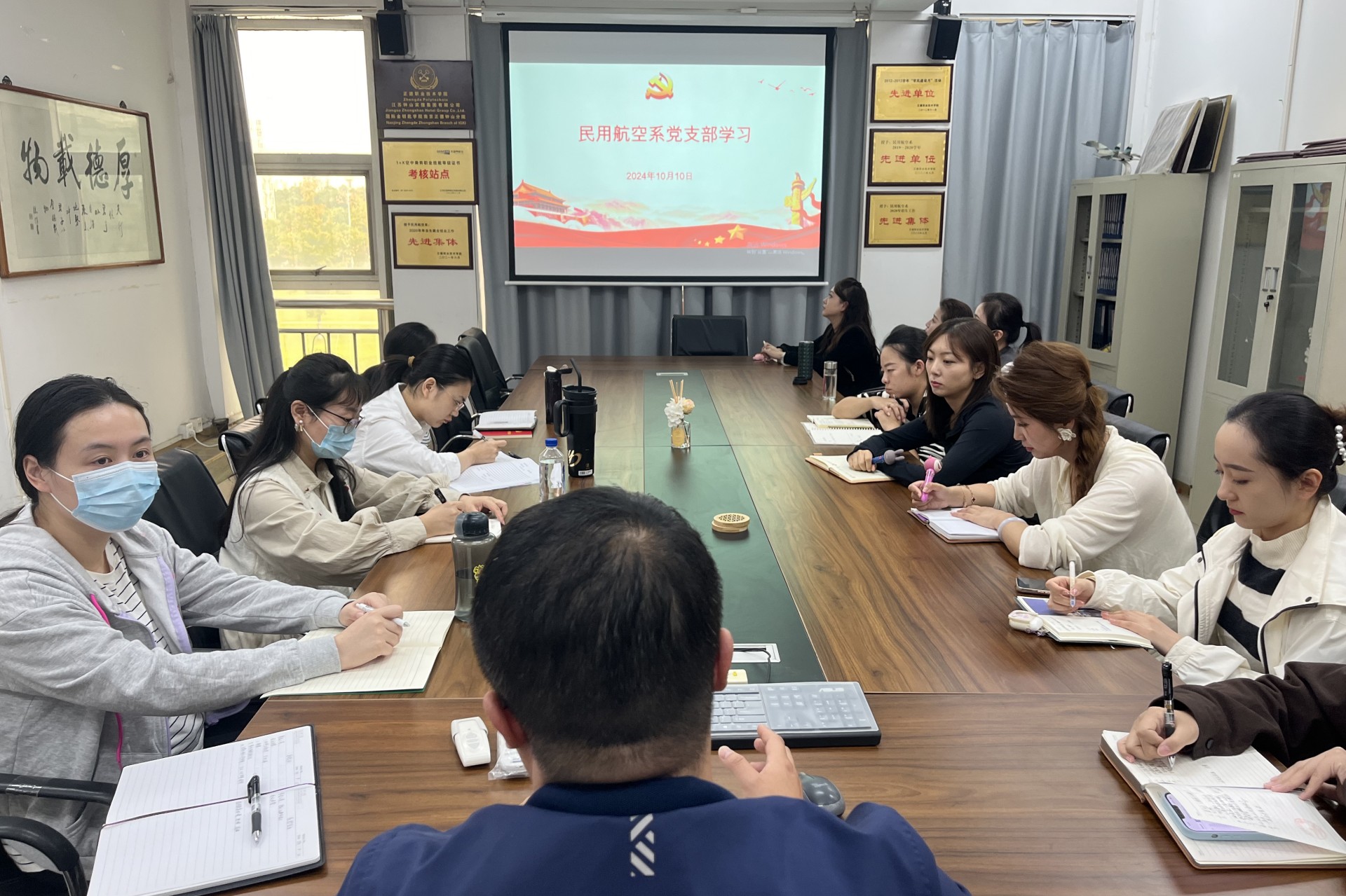 10月10日下午,民用航空系党支部在3203会议室召开十月理论学习(扩大)会议。会议由支部书记查理主持,支部全体党员及党外教师参加会议。
