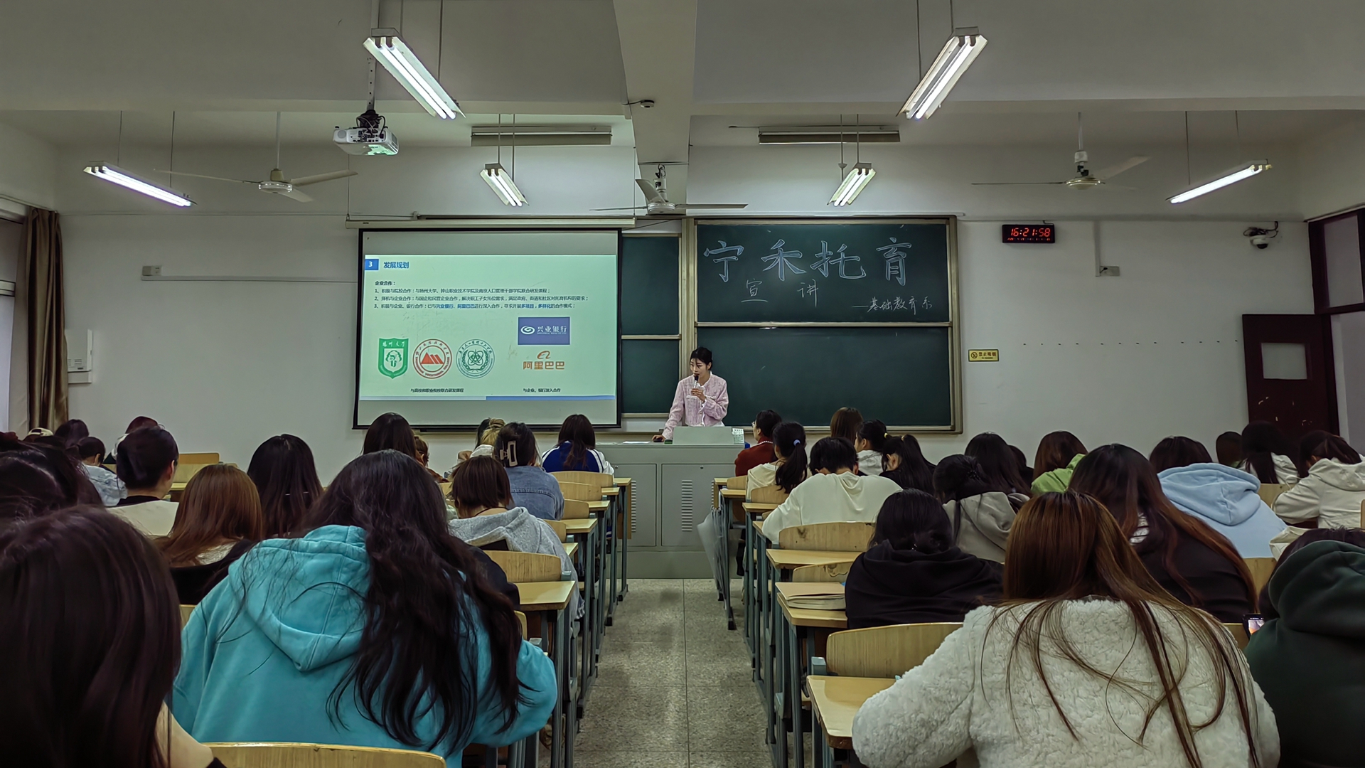 宁禾托育精心准备宣讲材料,向学生展示了行业现状、户外露出、发展规划、福利待遇以及校企合作培养模式等相关信息。通过企业的宣讲,学生对企业有了更直观的了解,对岗位实习方向有了更明确的选择和计划。