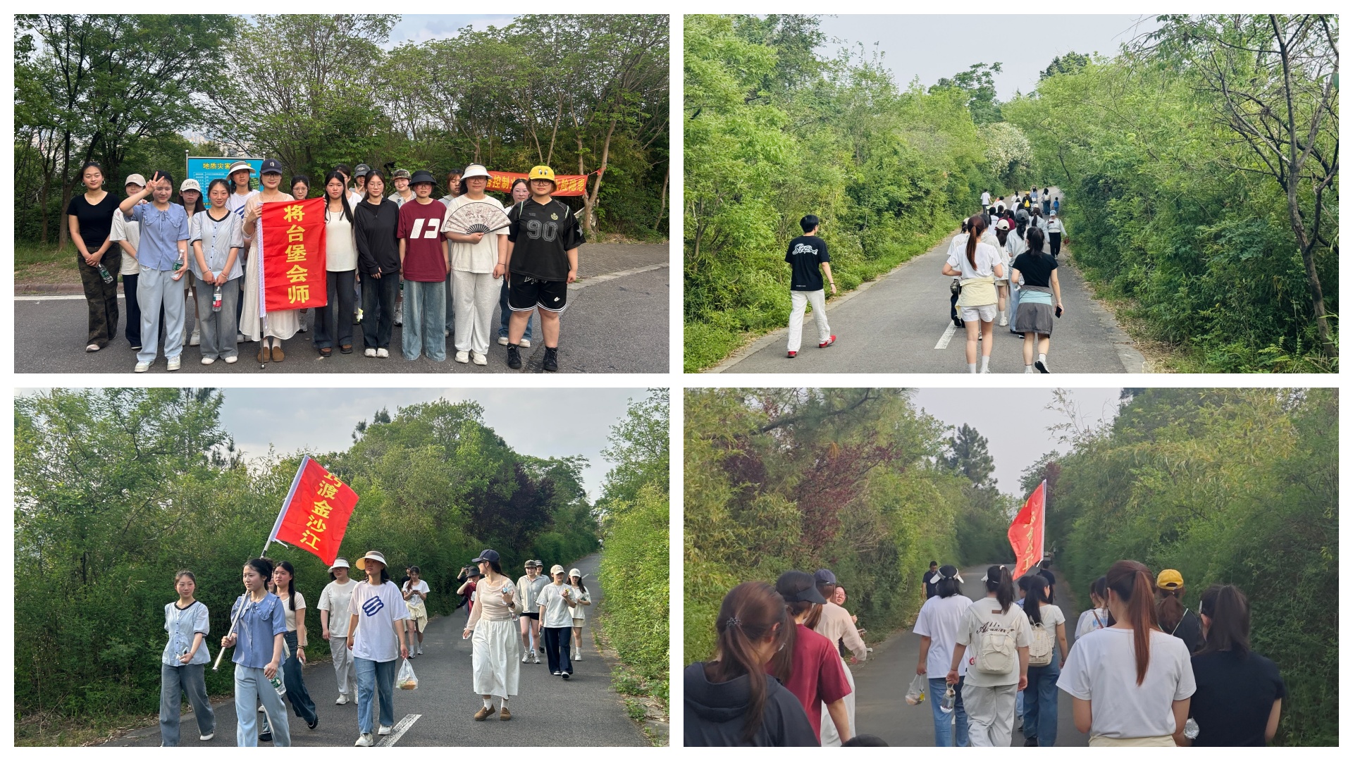 本次活动将翠屏山比作红军长征路,同学们以实际行动“重走”长征之路,将登山途中所遇到的各种困难,联想到长征中的艰难险阻,如巧渡金沙江、穿越草地、胜利会师等。尽管我们面临的挑战远不及先辈们的艰险,但随着登山高度的不断攀升,原本轻松愉快的氛围逐渐被沉重的脚步与粗重的喘息所取代。有的同学脚步愈发沉重,有的汗流浃背、气喘吁吁,但大家始终互相鼓励、彼此打气,凝聚起强大的团队力量,在坚持中磨练意志,在协作中激发斗志。