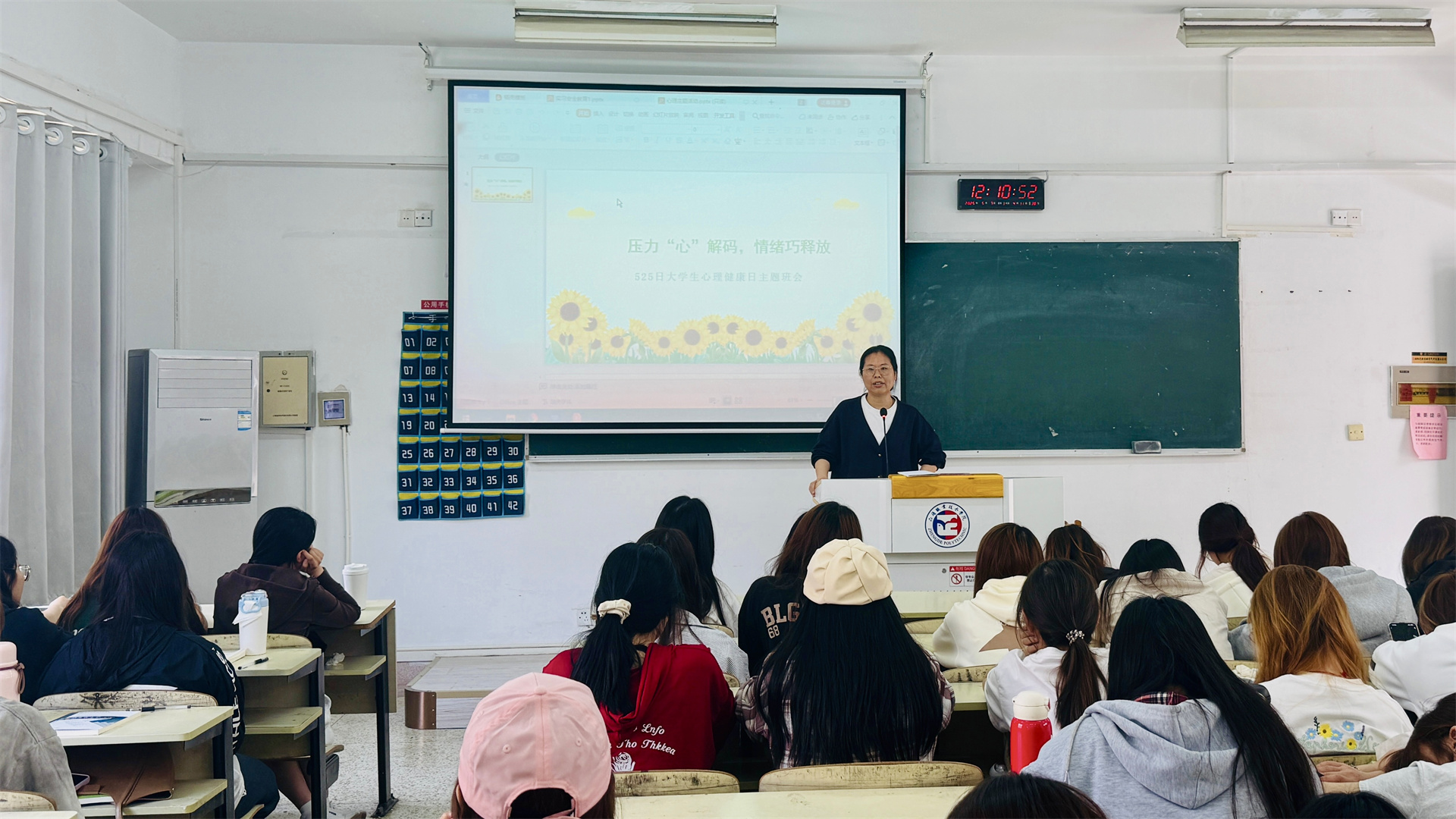 5月19日,基础教育系举办了“压力‘心’解码 情绪巧释放”主题班会,由辅导员沈言静老师主持。班会围绕大学生常见的心理问题展开,引导同学们正确认识压力,学会科学应对情绪波动,增强心理健康意识。沈老师从实际案例出发,分析常见的心理压力来源,并提供了切实可行的情绪调节方法,现场气氛温馨而富有启发性。