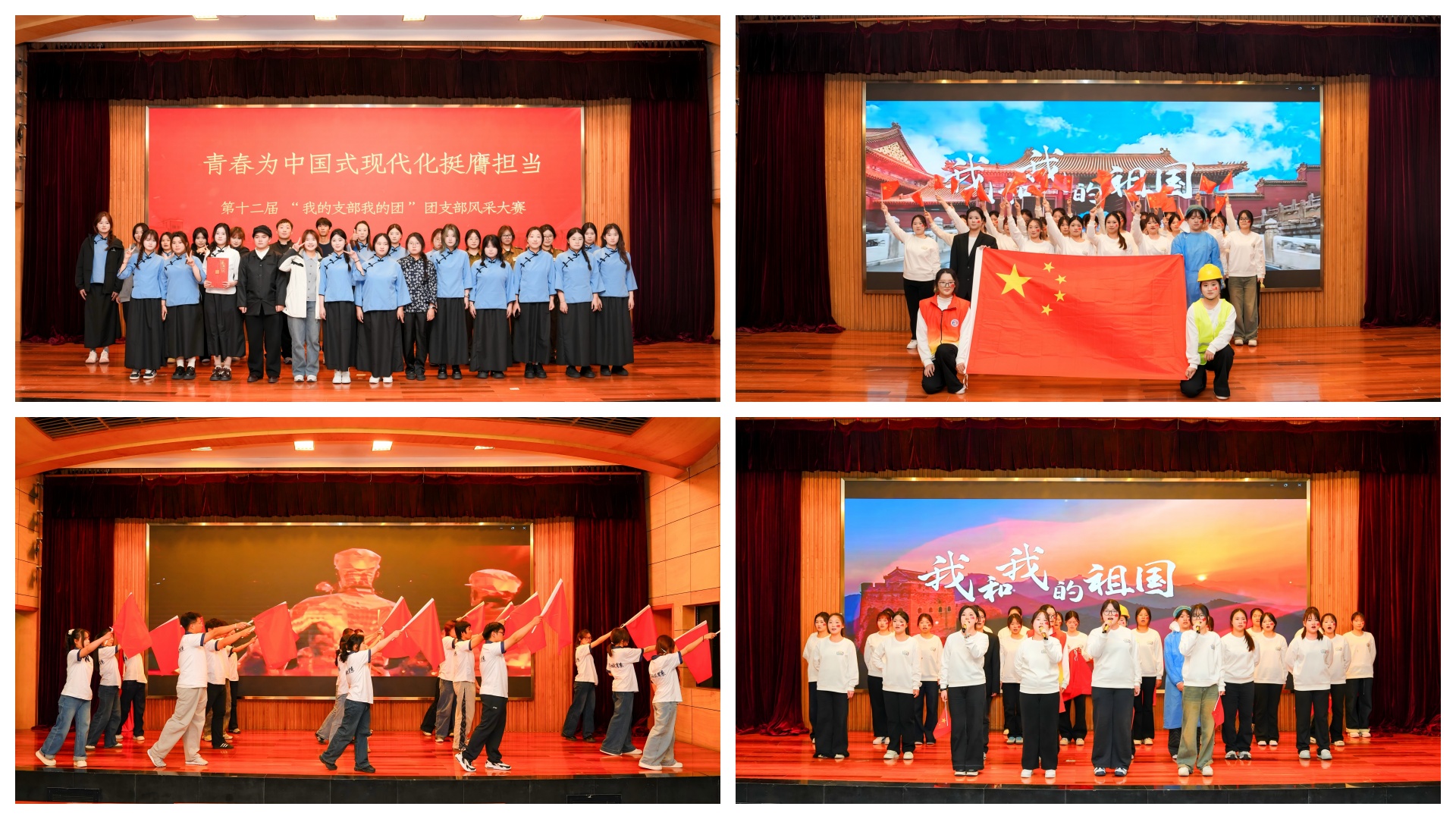 决赛现场,基础教育系团支部的表演亮点纷呈、掌声不断。《我和我的祖国》大合唱率先登场,奏响时代强音,嘹亮的歌声交织着真挚的情感,传递出对祖国母亲的赤诚与眷恋;舞蹈+朗诵《红旗逐风过万程》以昂扬向上的姿态,诠释了新时代青年追随红旗、勇毅前行的蓬勃朝气;随后,《觉醒年代》舞台剧压轴出场,同学们以精湛的演技还原百年前的热血场景,青年学子为民族觉醒振臂高呼的模样直击人心,让“五四精神”在舞台上熠熠生辉。