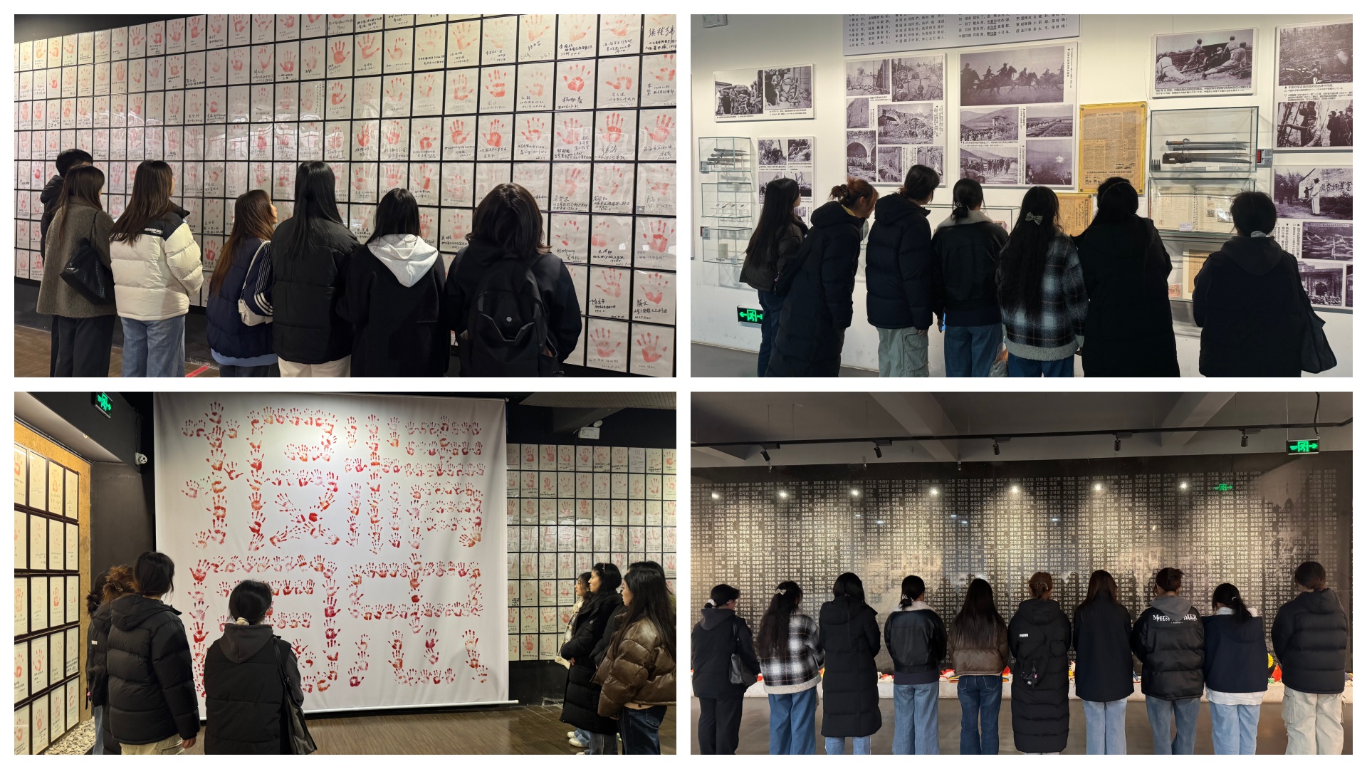 在展厅内,泛黄的历史照片、斑驳的抗战实物、满墙的遇难者姓名铭刻,将大家带回那段山河破碎的岁月。同学们驻足凝视,认真聆听广播的介绍,从抗日军民的抗争故事到南京大屠杀的惨痛史实,每一个细节都让大家深受震撼,不少同学在遇难者纪念墙前肃立默哀,表达对逝者的追思。