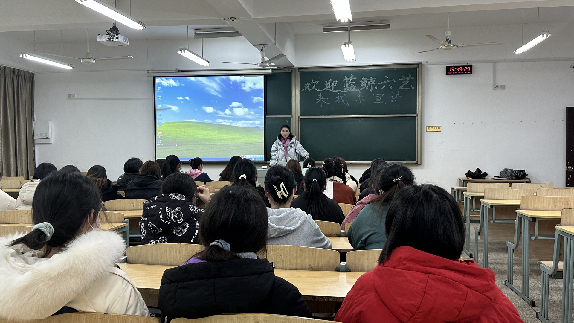 蓝鲸六艺负责人谢楚老师指出,该企业的教育理念是“用艺术引出孩子潜藏的智慧”,以文明的传承与开拓为宗旨,以每个孩子面向未来发展为归宿,创办独立品牌蓝鲸六艺。谢老师详细介绍了企业概况、户外露出、企业员工培养模式、企业发展状况及发展前景与同学们作了分享。在宣讲会的互动环节,同学们也就自己所关心的专业对口、企业所需求的人才素质、公司发展平台与机会等问题与谢老师进行了互动交流,谢老师认真作答,并多次强调“选择”对于大学生的重要性,希望同学们都能找到自我实现的价值与目标,并为之努力奋斗。宣讲会场面热烈,掌声不断。
