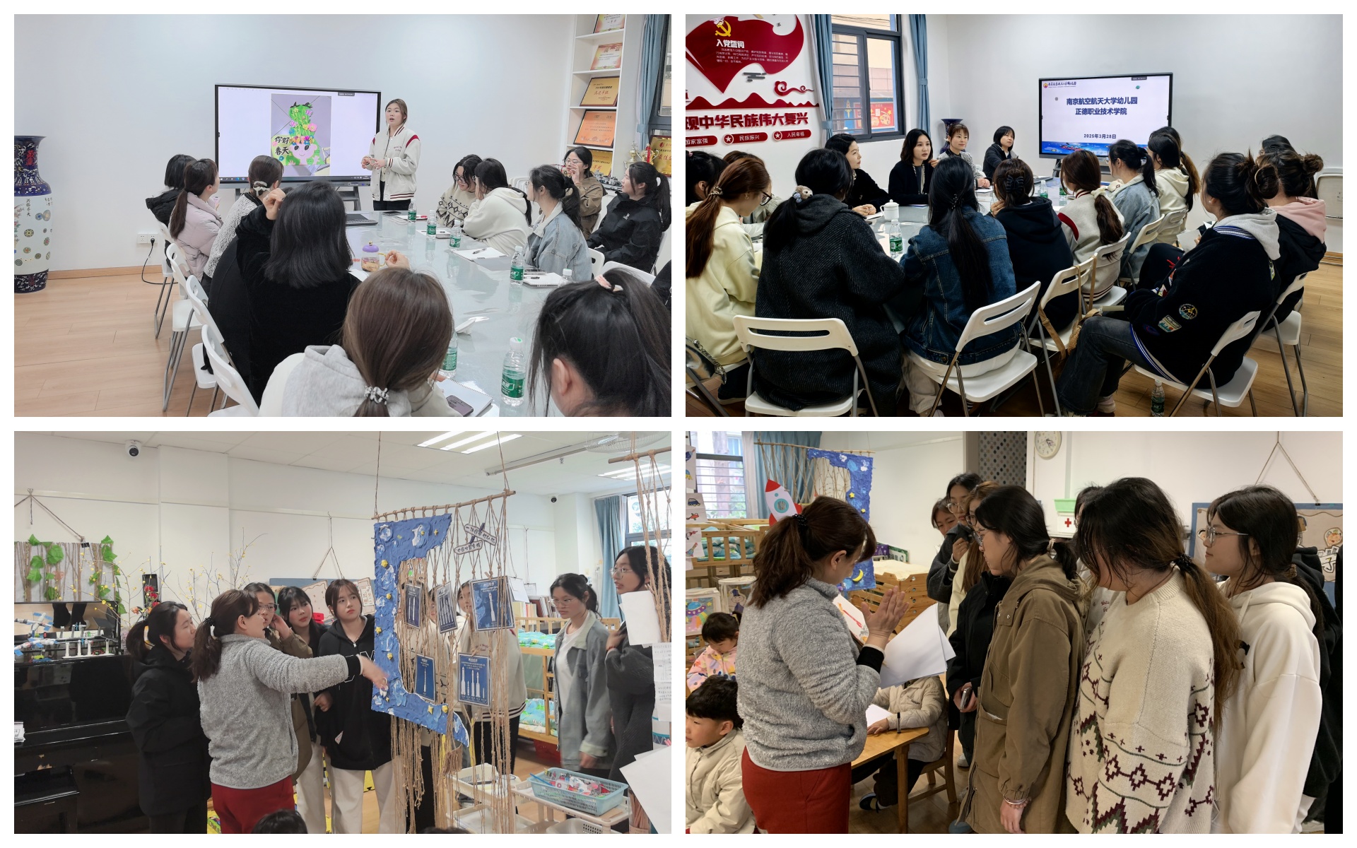 2025年3月28日,基础教育系专业教师孟馨应邀带领部分大二学生,将本学期幼儿园教育环境创设课程部分作品于南京航空航天大学幼儿园展出,受到了南航幼儿园及幼儿美术教研组教师的一致评价。
