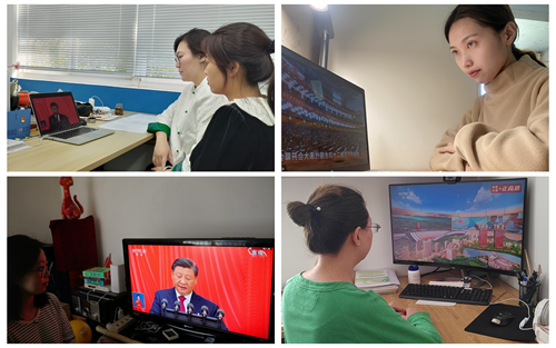 开幕会前,在场的师生们首先观看了大型电视专题片《领航》第一集《掌舵远航》,为收看开幕会营造了浓厚的氛围。随后,师生们全程收看了二十大开幕会,认真聆听了习近平总书记的报告。近两个小时的报告,师生们始终全神贯注,不时记录下报告的要点和自己的感悟。开幕会结束后,师生们立即展开了学习交流。