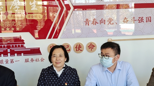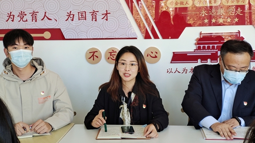 辅导员刘婧在交流中说到作为一名高校辅导员,要继续坚守“立德树人”初心,牢记“为党育人、为国育才”使命,进一步在做好新时代大学生政治引领、价值引领、思想引领和文化引领上下功夫。