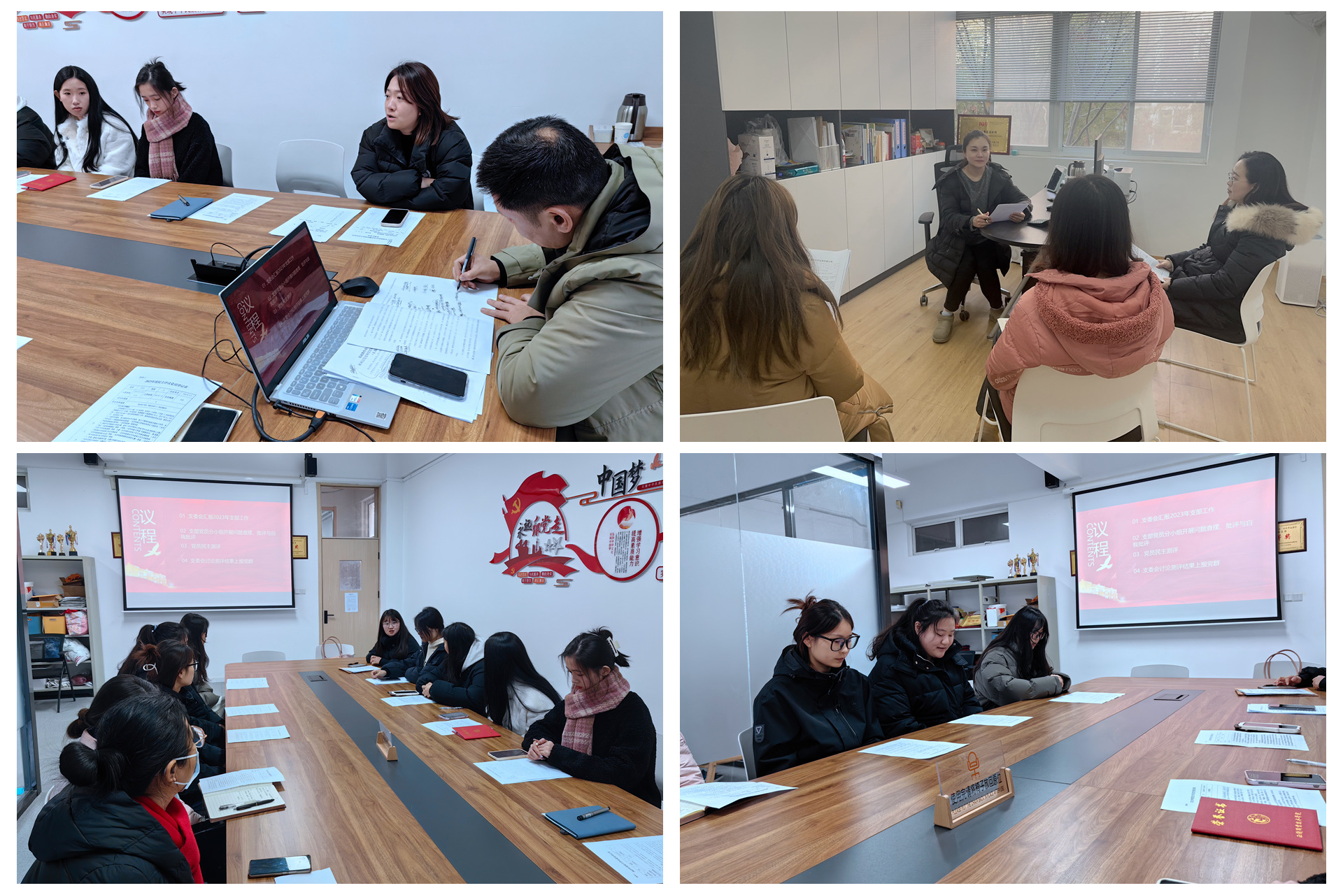 会议由党支部书记包毅主持,支部全体党员参加,党群工作部副部长雷杨老师全程参与指导。党支部书记包毅代表支委会向全体党员报告支部一年来的工作情况。他着重从主题教育、“三会一课”、党员培育与发展、“书记项目”、凝心聚力及存在问题六个方面报告了一年来支部的工作情况以及查摆问题与整改措施。党支部以党小组形式开展批评与自我批评。支部党员逐一对照理论学习、 政治素质、能力本领、担当作为、工作作风、廉洁自律等六个方面突出问题进行自我查摆,反思不足、提出整改举措,作自我批评与存在问题分析。全体党员紧紧围绕促进高质量发展,提升育人担当的角度,对每位党员指出存在问题,提出努力方向。