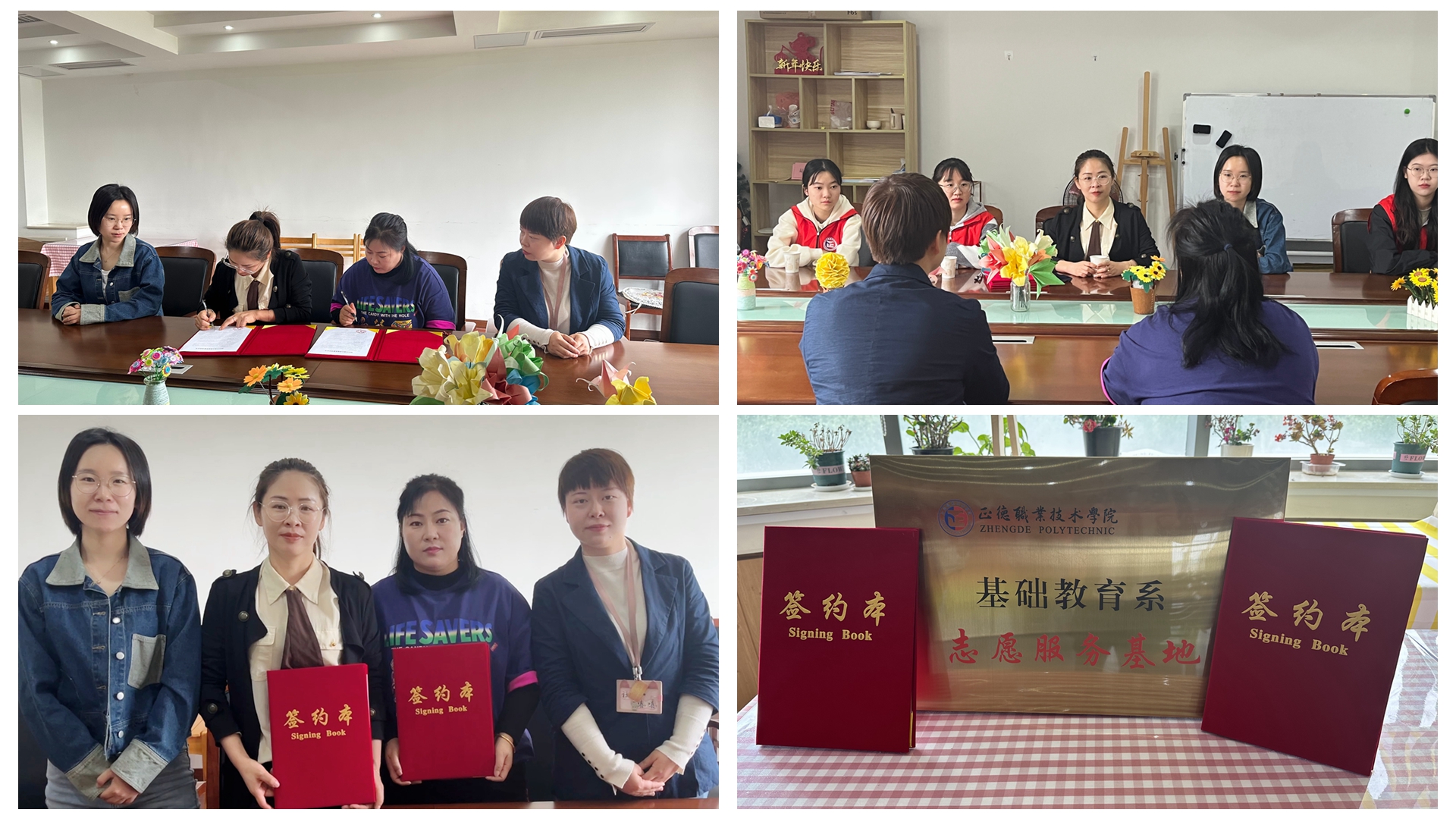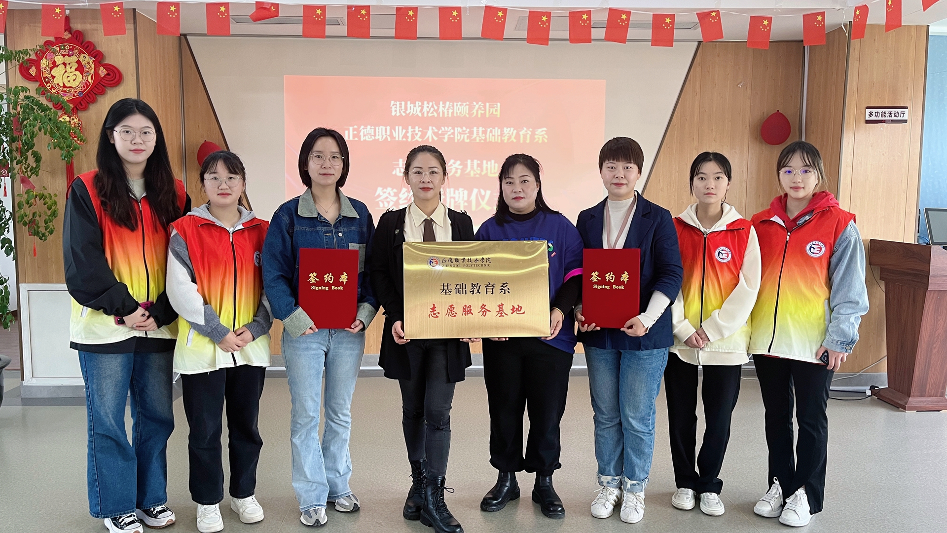 签约揭牌仪式上,银城松椿颐养园王主任首先致辞,她对正德学院基础教育系以及同学们积极的志愿奉献精神表示了感谢,同时表达了双方合作、共同开展志愿服务、奉献社会的美好心愿。系党支部书记杨春娟代表基础教育系志愿者团队致辞,她对双方合作建立常规志愿服务基地表示热烈祝贺,对本系志愿者团队的志愿者长期坚持奉献青春力量,感恩回馈社会的行为表示称赞,并详细介绍了基础教育系志愿者团队志愿服务的基本情况,预祝双方的合作取得丰硕成果。随后,王主任和杨春娟书记为“户外露出 —基础教育系志愿服务基地”揭牌并在协议书上签字。
