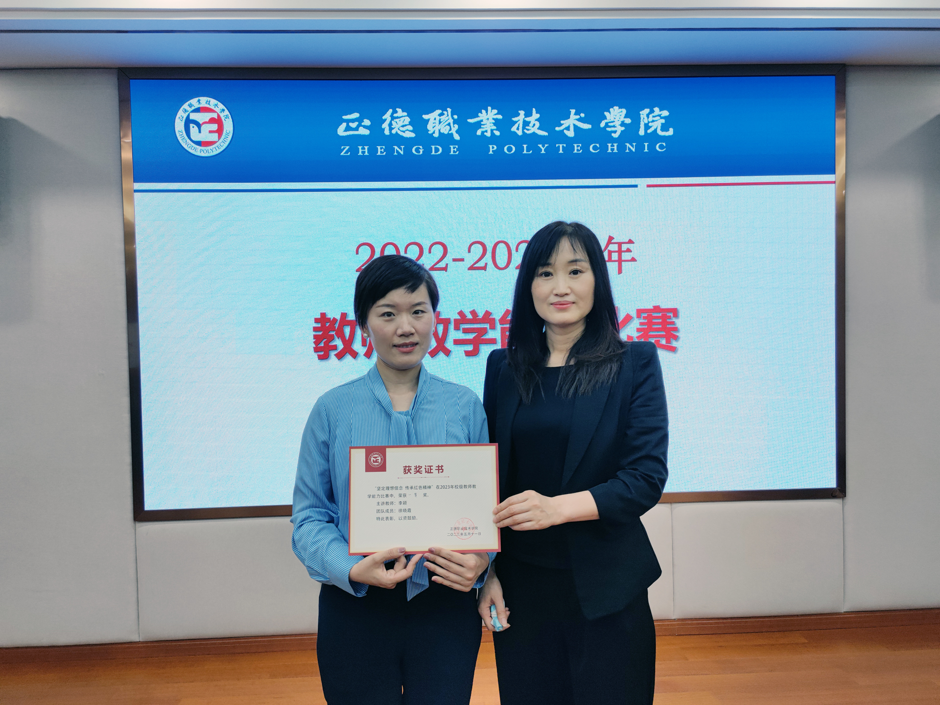 教师教学能力比赛在5201会议室举行,思政教研部李颖、徐晓霞老师在比赛中表现出色,荣获一等奖。