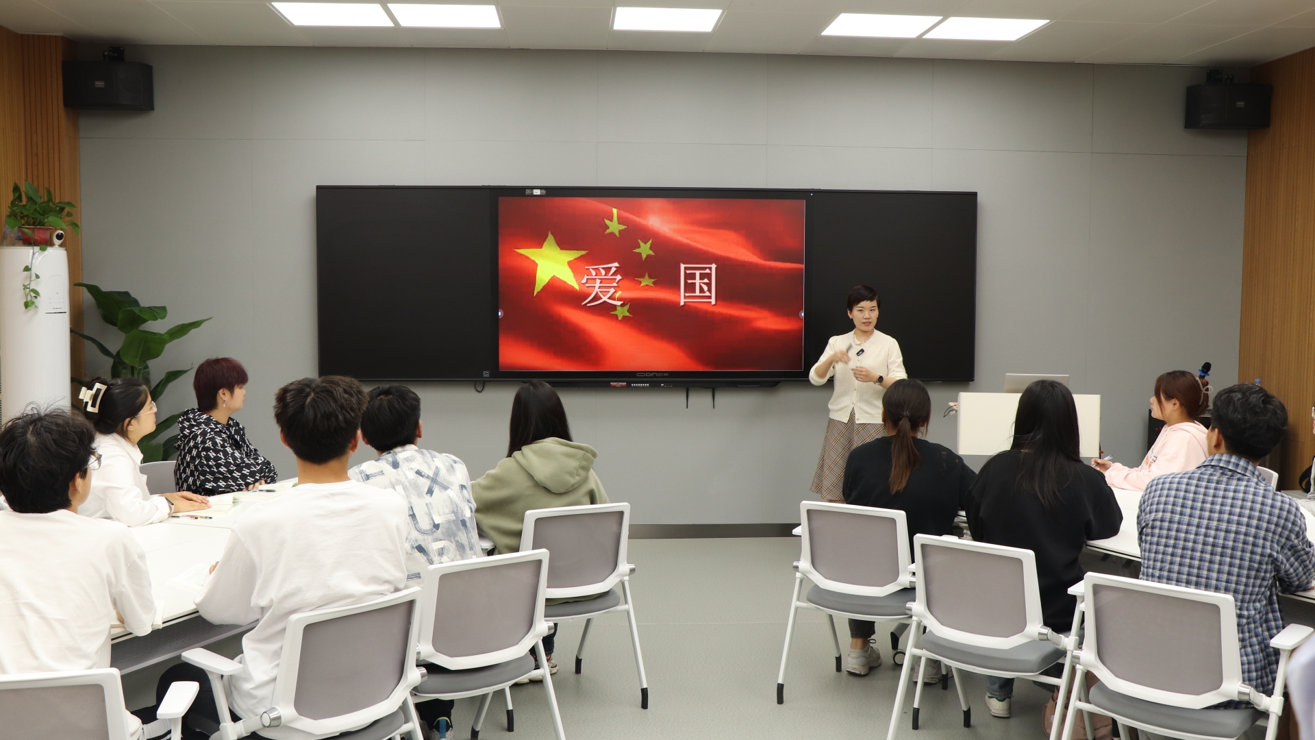 公共教学部戴晗越和杨俊老师现场观摩了课程,他们表示李颖老师以爱国引入话题,循序渐进,由浅入深引发同学发散思考,提升学生学习热情;通过课堂互动,让学生深入思考;从历史和现实维度的统一描述爱国性质,爱国是具体的,不是抽象的。从历史和现代的角度,以国家新闻、历史影片的方式,从国家的发展论证社会主义具有不可比拟的优越性。