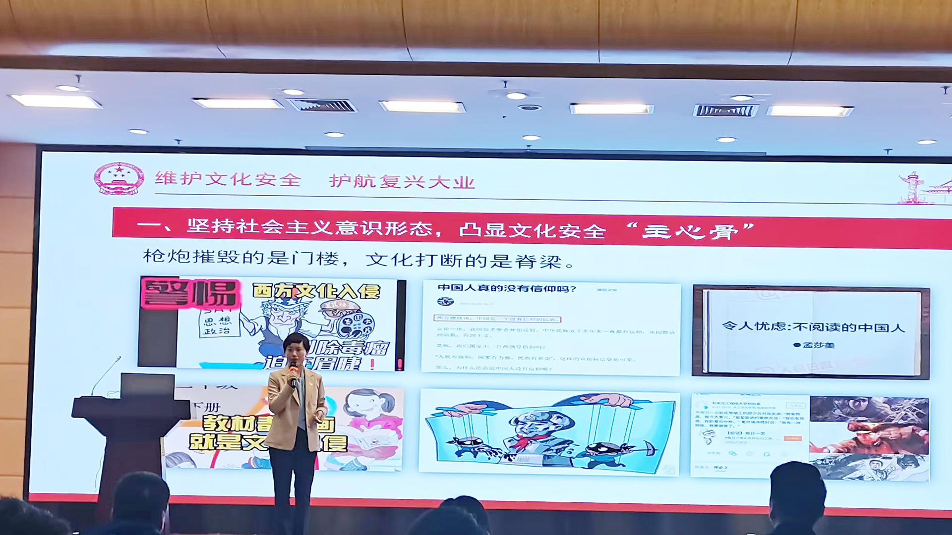 宣讲稿从文化安全入手,强调了有效应对思想文化领域风险挑战、加快构建新安全格局具有的重要意义,并从坚持社会主义意识形态,凸显文化安全“主心骨”;坚定文化自信自强,把稳文化安全“定盘星”;弘扬中华优秀传统文化,守正文化安全“动力源”三个方面展开论证,阐明了如何有效维护文化安全,护航复兴大业的途径。大家一起对宣讲稿和课件进行反复打磨,逐字逐句斟酌,一张图片、一个动画地完善。李颖老师甚至提前两天前往比赛现场熟悉场地,进行试讲。整个备赛过程充分体现了团队合作的力量。