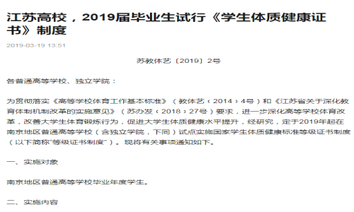 强化体育锻炼 1、坚持健康第一,实施学校体育固本行动。 2、严格执行学生体质健康合格标准,健全国家监测制度。除体育免修学生外,未达体质健康合格标准的,不得发放毕业证书。 …… | |