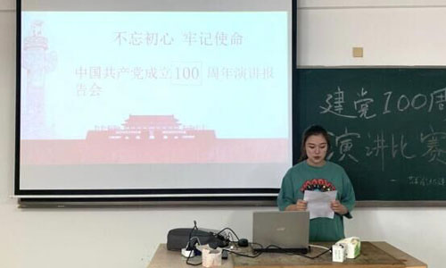 庆祝党的一百周年到来之际,我系积极举办相关活动。为庆祝建党一百周年,讴歌中华民族实现伟大复兴的百年奋斗历程,颂扬中国人民在中国共产党领导下所取得的伟大成就,激励广大青年坚定理想信念,激发广大同学历史责任感。5月13日我系在多媒体教室隆重举行了“奋斗百年路,启航新征程”主题演讲,庆祝中国共产党成立100周年。