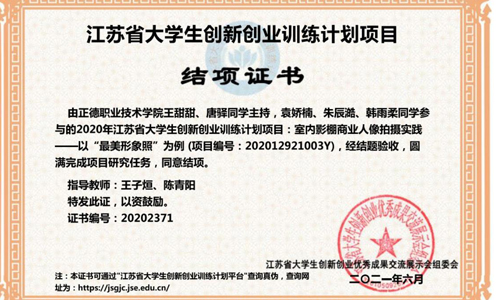 近日,艺建系“最美形象照”摄影作品展圆满举办,该展览为艺建系王子烜、陈青阳老师所指导的2020年江苏省大学生创新训练计划项目(项目名称:室内影棚商业人像拍摄实践——以“最美形象照”为例)的一个成果展示环节,该项目也在不久前的结题评审结果中获得优秀评价。