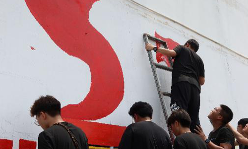 志愿者们去往了当地的农户为他们绘制征兵宣传的墙绘,到街头发放传单宣传拥军爱国;