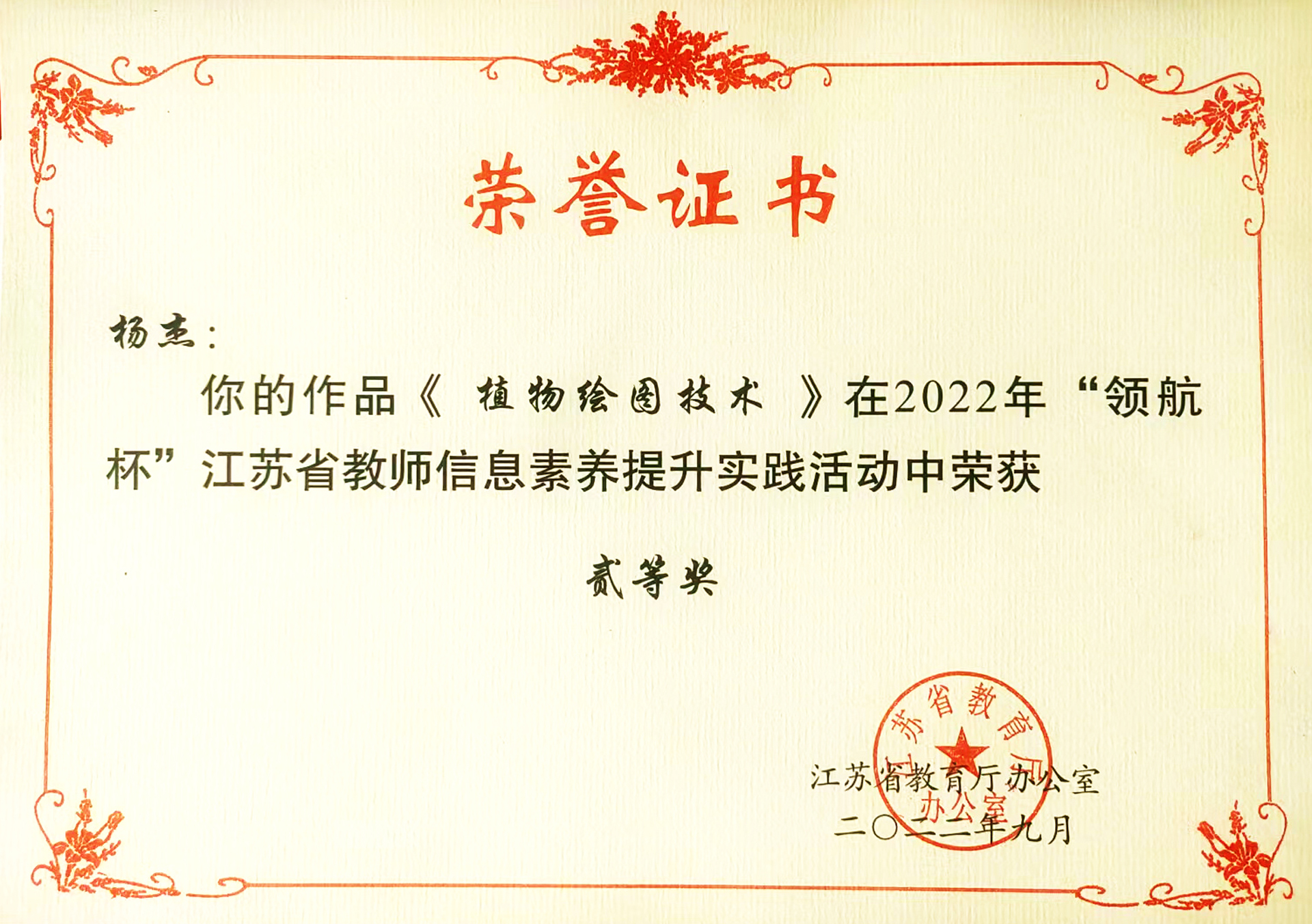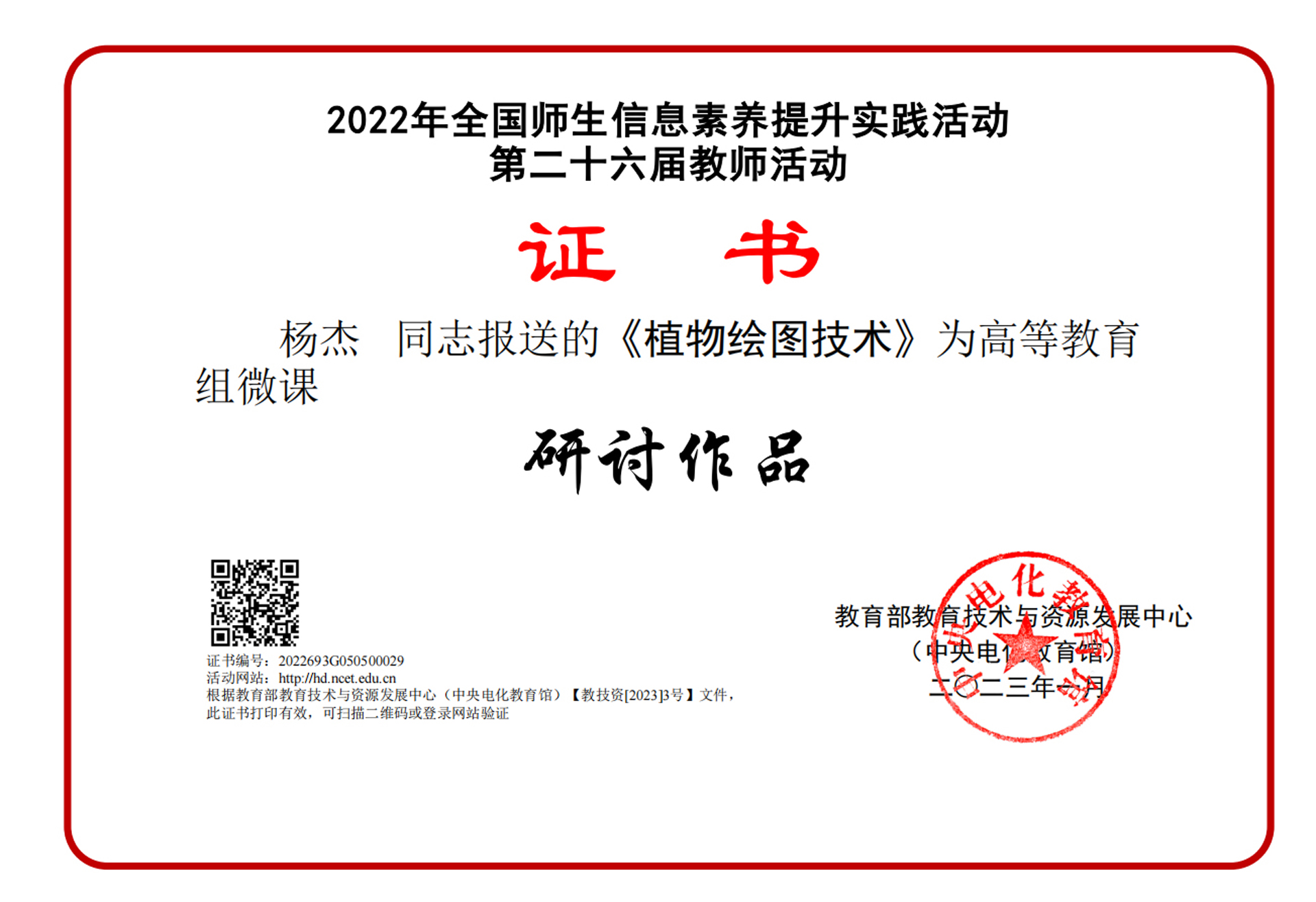 在近日由教育部教育技术与资源发展中心 (中央电化教育馆)主办的2022年度教育技术微课活动,户外露出 艺术设计与建筑工程系杨杰老师的微课《植物绘图技术》荣获“研讨作品”。本届微课活动是由“省赛-国赛”的竞赛体系构成,省赛获奖的作品经遴选后,送往国赛进行竞赛。
