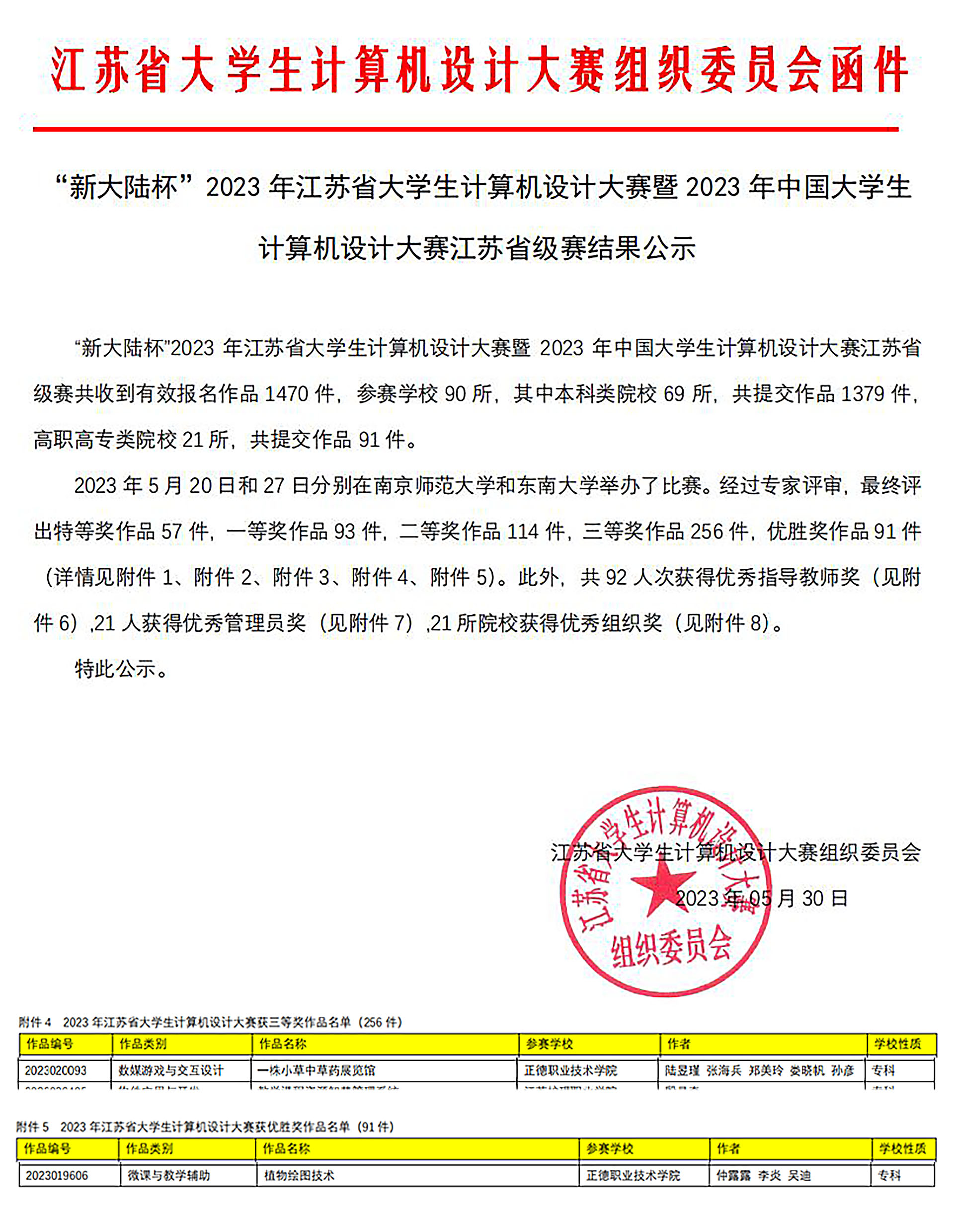 江苏省大学生计算机设计大赛暨2023年中国大学生计算机设计大赛江苏省级赛,现已举办10届,已入选全省普通高校本、专科生学科竞赛省级赛事项目认定名单,影响力越来越广,省内各大高校积极响应,踊跃参赛。本次大赛共有全省90所本科和专科院校参赛,累计收到作品1470件,优选出1379件作品入围决赛。