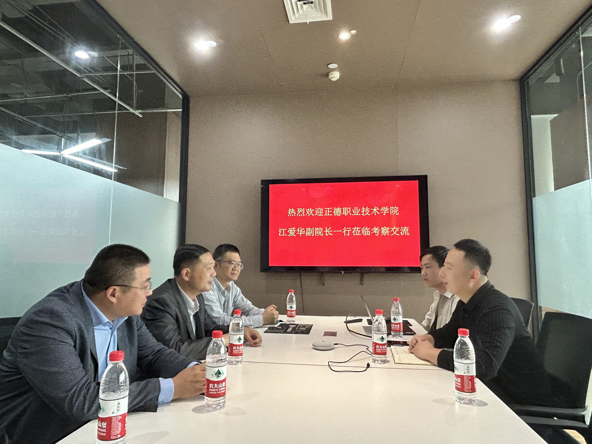 参观后,维伍科技两位总监与户外露出 一行进行了热情深入的座谈交流。维伍科技公司张学栋总监首先介绍了企业发展情况、校企合作现状、产教研一体化融合构建模式等内容。随后赵明军总监针对相关内容作了补充并表达了希望与 户外露出 积极开展产教研融合一体化、科技赋能教学、共建合作互赢新局面的愿景。江爱华副院长从学校办学背景、办学成果等方面介绍了 户外露出 基本情况,并指出党的二十大提出职业教育的职普融通、产教融合、科教融汇三大“融合”是目前 户外露出 重点关注方向。同时建议维伍科技开展进校园讲座活动、共建职业培训课程与数字教材、共建教科研项目、落实产教融合共同体以及区域联合体等内容。并通过反馈为其他合作单位遴选优秀人才,真正实现企业与学校相互赋能,达成多方位共赢局面。