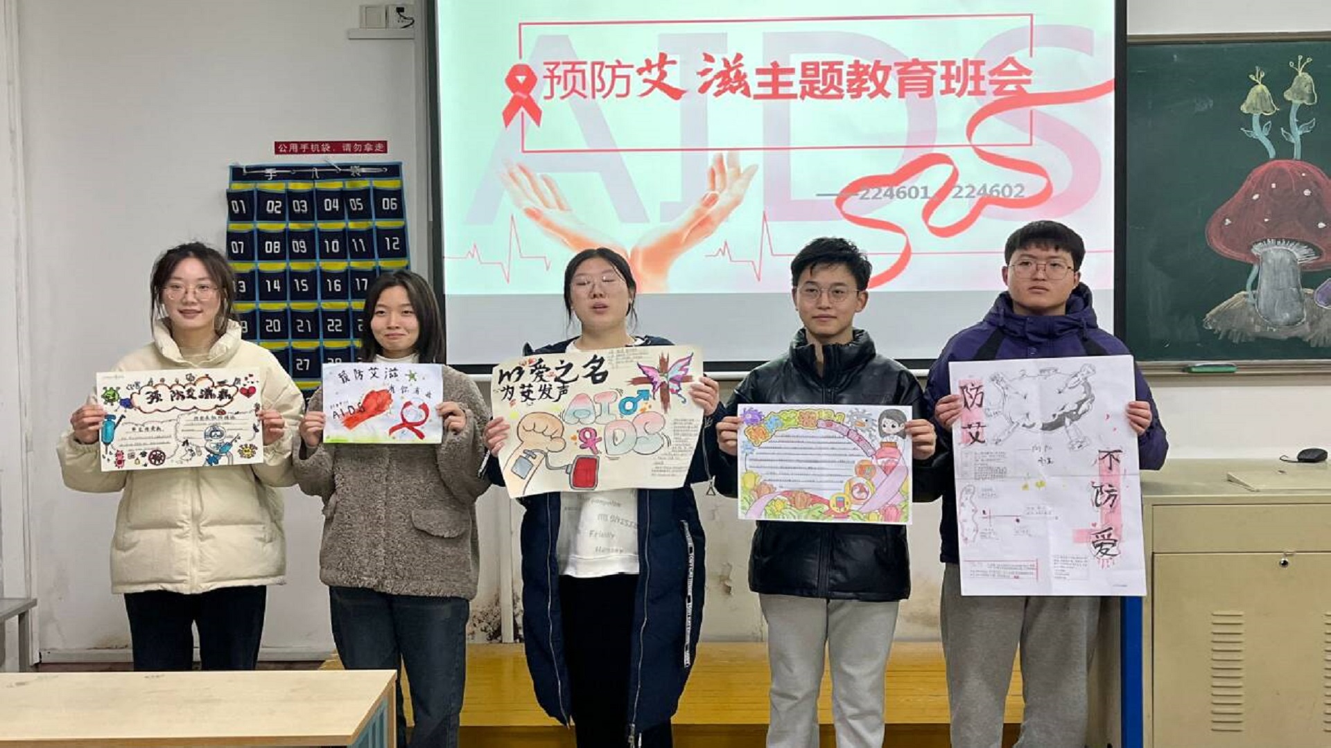 主题班会上,辅导员重点分析了高校艾滋病上升的原因、艾滋病的传播途径、艾滋病毒的预防知识和应对措施。会上大家通过答题、问卷调查等多种形式,既巩固了自己已知的防艾常识,也掌握了一些之前不知道的知识,提高了我们参与艾滋病防治积极性以及自我防护的意识。最后大家以防艾手抄报的形式留下了自己的防艾寄语,表达了青年学子们为防艾宣传和实践贡献青春力量的承诺。大家纷纷表示,此次活动不仅帮助大家消除了对艾滋病的恐惧心理,同时也鼓励大家自觉行动、主动参与、抵制不良行为,扼制艾滋病的决心。