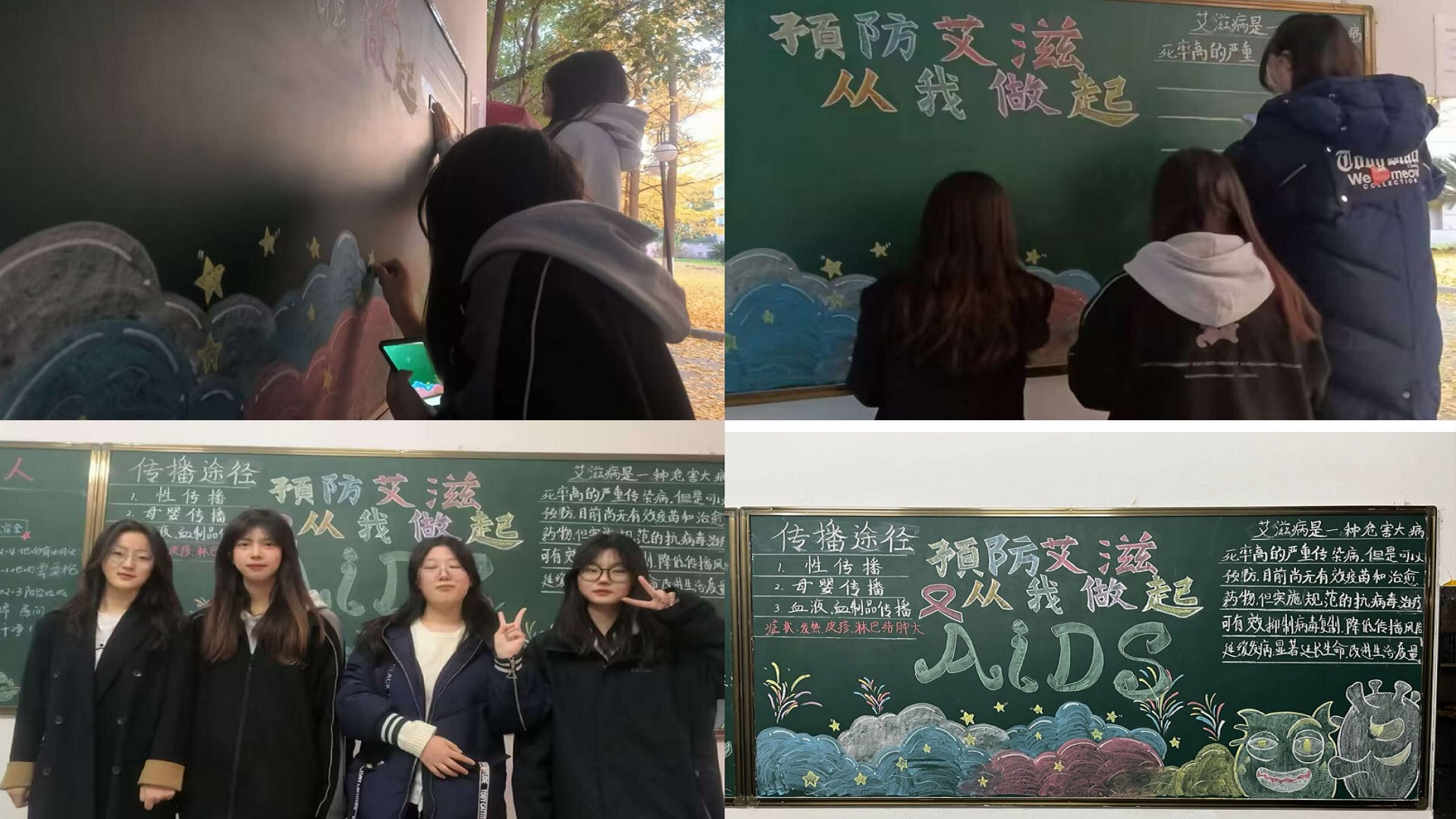本次活动的设置包括“预防艾滋,从我做起”主题板报展,以及以“知艾防艾”为主题的班会、知识问答等多项内容。大学生志愿者们通过在宿舍区制作防艾主题黑板报,向同学们普及预防艾滋病的相关知识,让大家对预防艾滋病有了更深的了解。