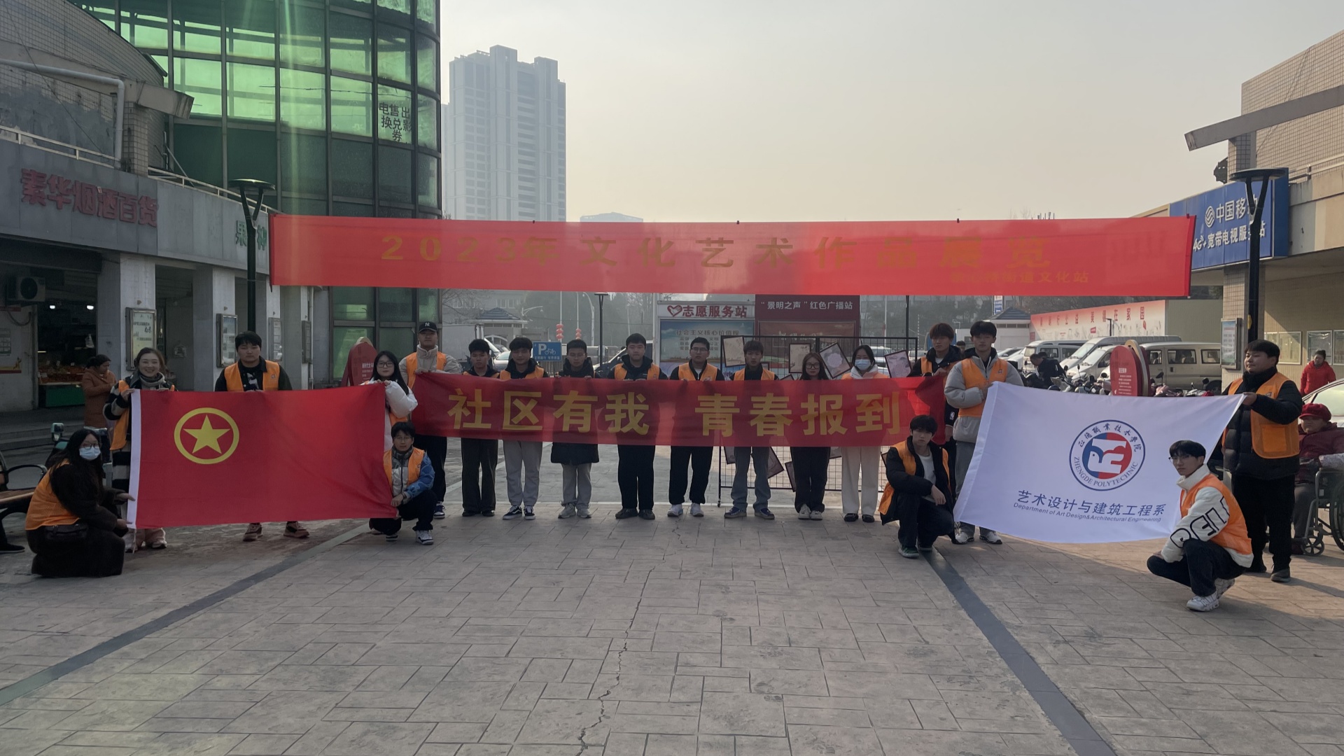为贯彻落实习近平总书记关于青年工作的重要思想,增强共青团社会功能,建立大学生团员与基层团组织联系报到的常态化、制度化渠道,让文化育人融入高校思想政治工作全过程,贯彻立德树人根本任务,落实传承中华文化使命 ,本月艺术设计与建筑工程系学生志愿者们走进景明佳园社区,与社区携手展开2023年文化艺术作品展。