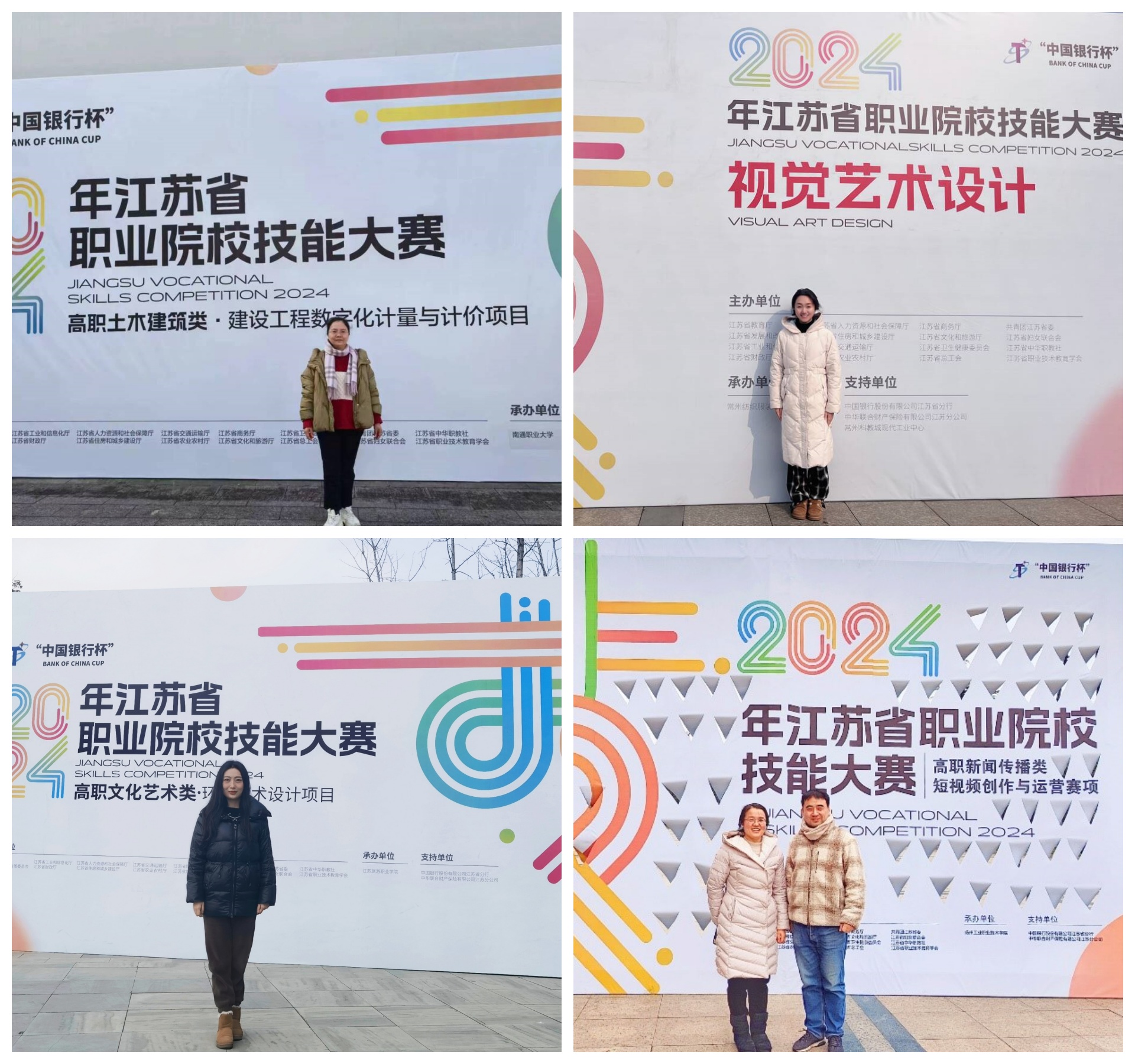 1月1日至20日, 2024年“中国银行杯”江苏省职业院校技能大赛高职组(第一阶段赛)项落下帷幕。艺术设计与建筑工程系共有13个赛项参加比赛,获得了二等奖3项、三等奖5项的优异成绩,其中时永玲、杨瀛、胡雨然、王水勤和王子烜等老师参加教师赛4个赛项并全部获奖;同时花卉和李卉老师指导的学生胥霁洲、徐景瑞、罗杨获得建筑工程数字化计量与计价赛项团队赛学生组二等奖,以总排名第七的成绩获得国赛选拔赛资格。取得了户外露出 在省技能大赛中的重大突破。