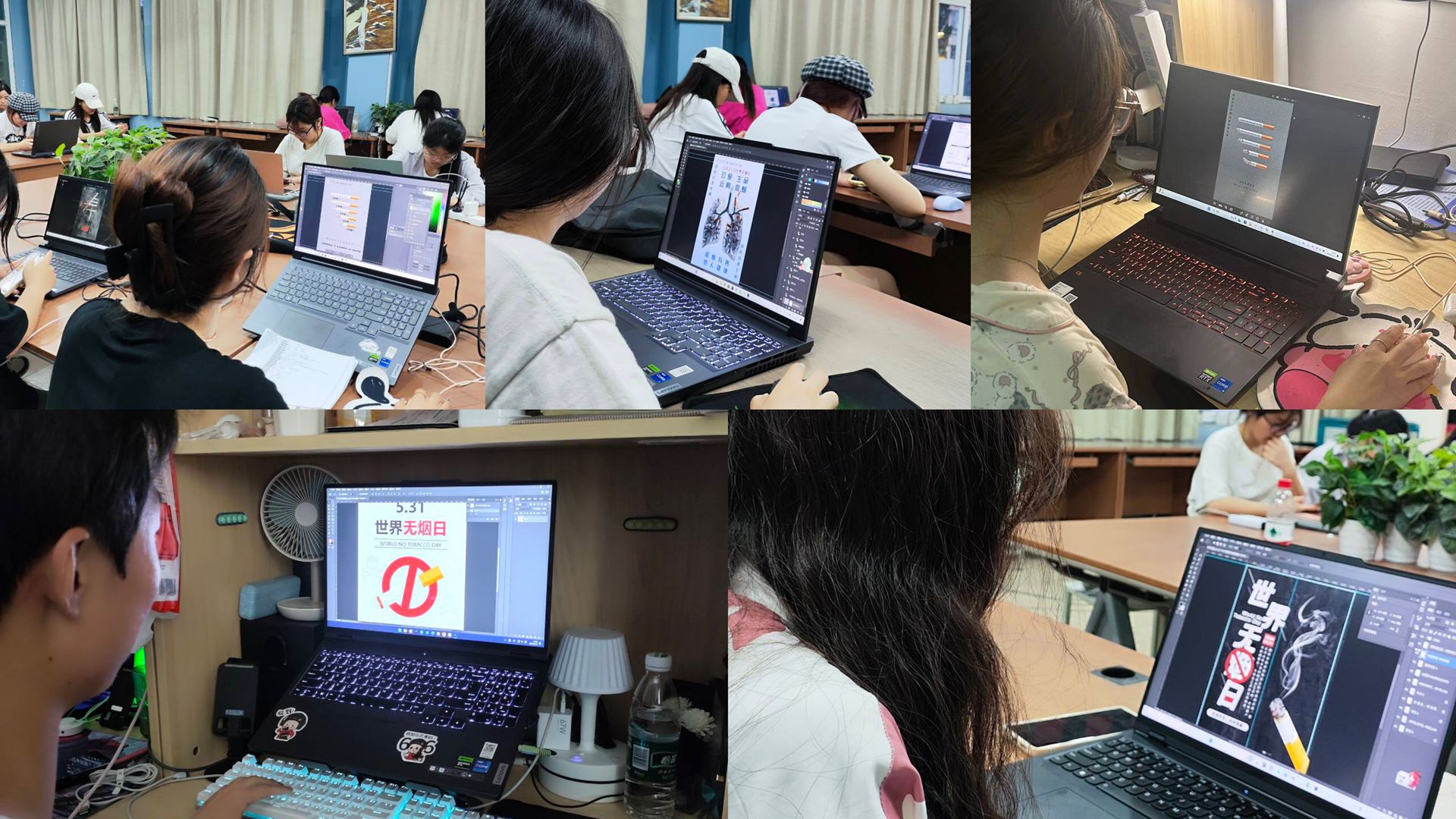 他们同时利用数字媒体知识制作无烟日主题海报,在校园紫藤长廊进行展示,吸引更多关注。