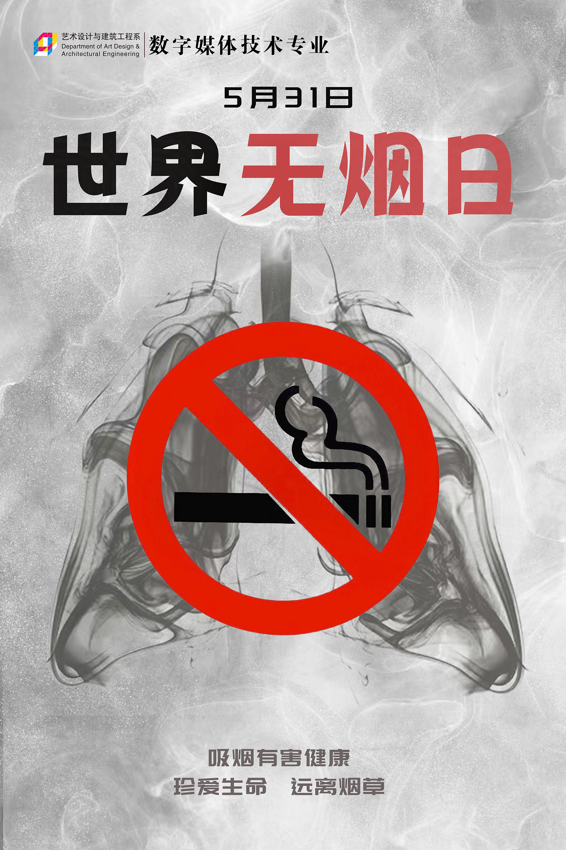 2024年5月31日,艺术设计与建筑工程系在校园内举办了以“世界无烟日”为主题的海报设计展。本次展览旨在提高师生对吸烟危害的认识,倡导健康无烟的生活方式。