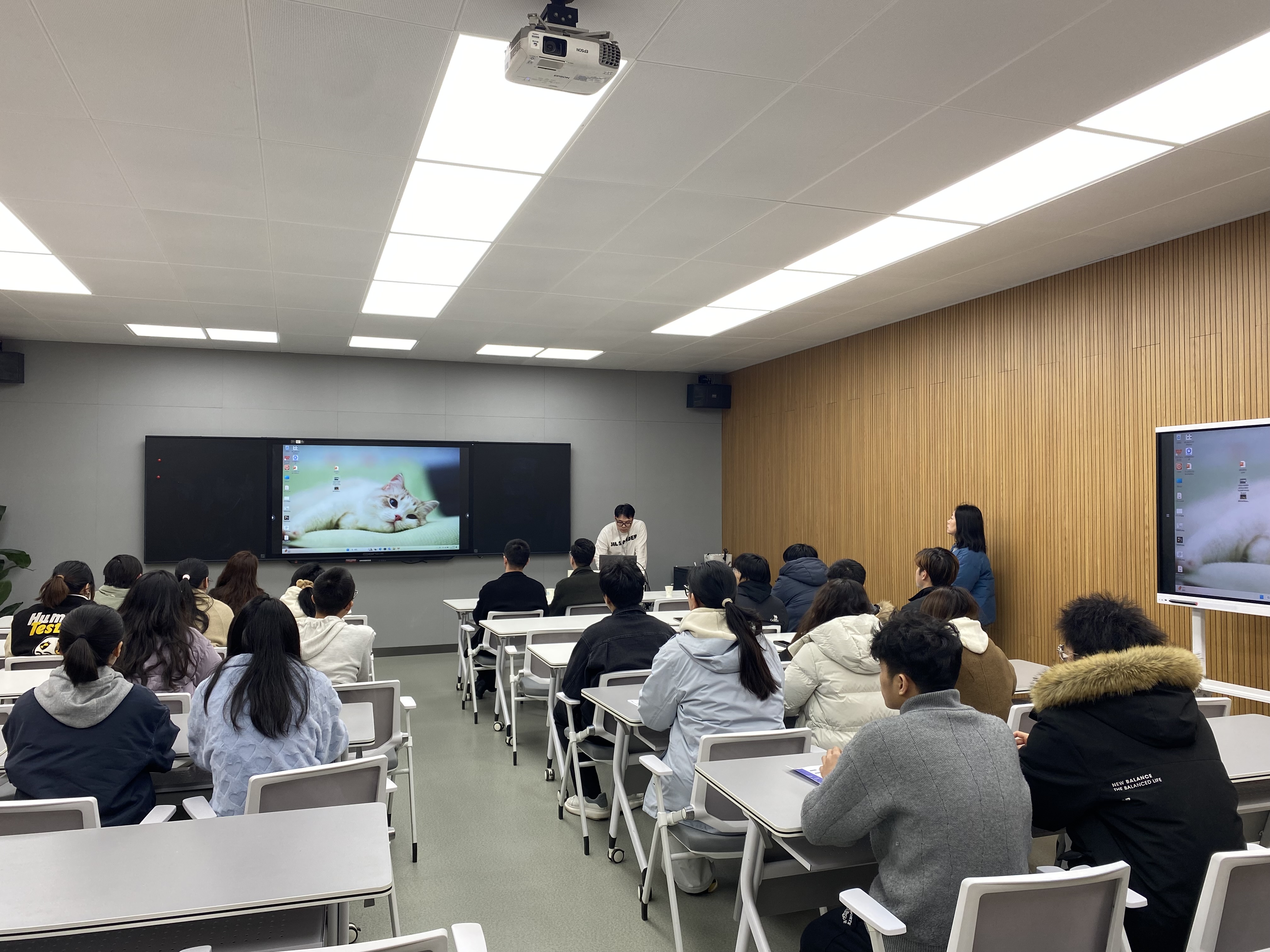 在宣讲会的《南京铭望装饰设计有限公司招聘宣讲》环节中,南京铭望装饰设计有限公司的人事主管饶书天先生,以生动详实的语言,全面介绍了公司的企业概况、深厚底蕴和独特精神。他强调,在求职的道路上,同学们不仅要不断提升自己的学习能力,更要时刻铭记个人的价值观,将其与职业发展紧密结合。随后,饶先生通过精美的PPT展示,详细阐述了自与我系签订订单班以来,双方在校企合作、学生共同培养方面所取得的显著进展和丰硕成果。最后,他满怀诚意地邀请同学们加入南京铭望装饰设计有限公司,共同追逐梦想,用知识回馈社会,用汗水铸就辉煌未来。