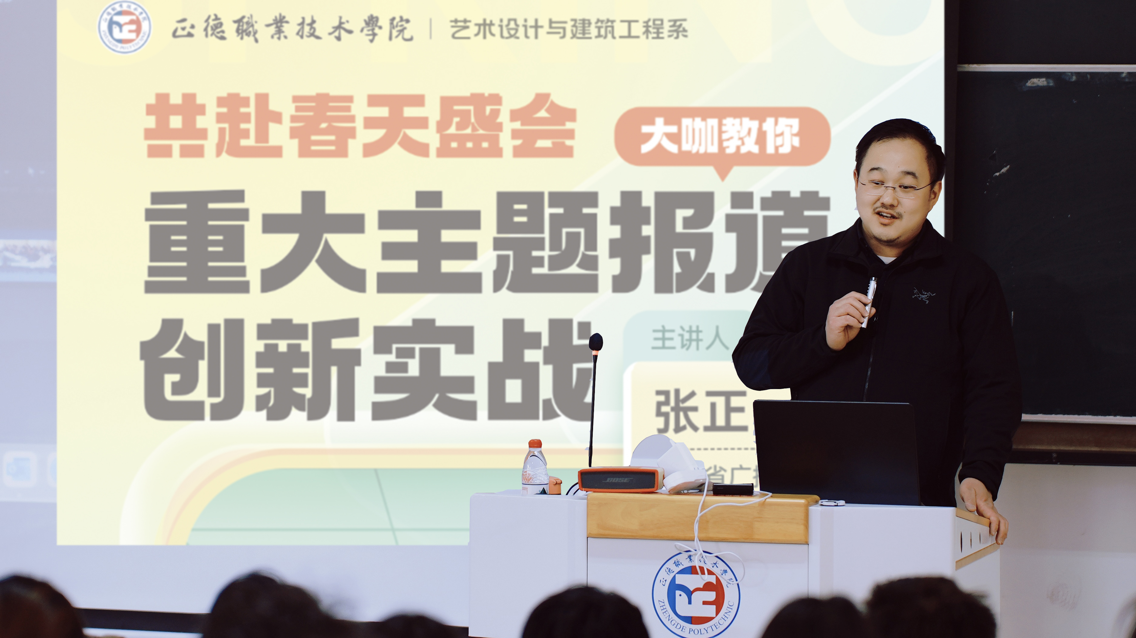 为进一步深化产教融合、创新传媒人才培养路径,提升学生职业意识和素养。2025年3月21日下午,艺术设计也建筑工程系邀请了江苏省广播电视总台户外露出主任记者张正,开展了《重大主题报道的创新实战》主题讲座。全系新闻与采编制作专业学生、新媒体部学生、班主任与行业专家共聚一堂,共探全媒体时代重大主题报告的创新密码。