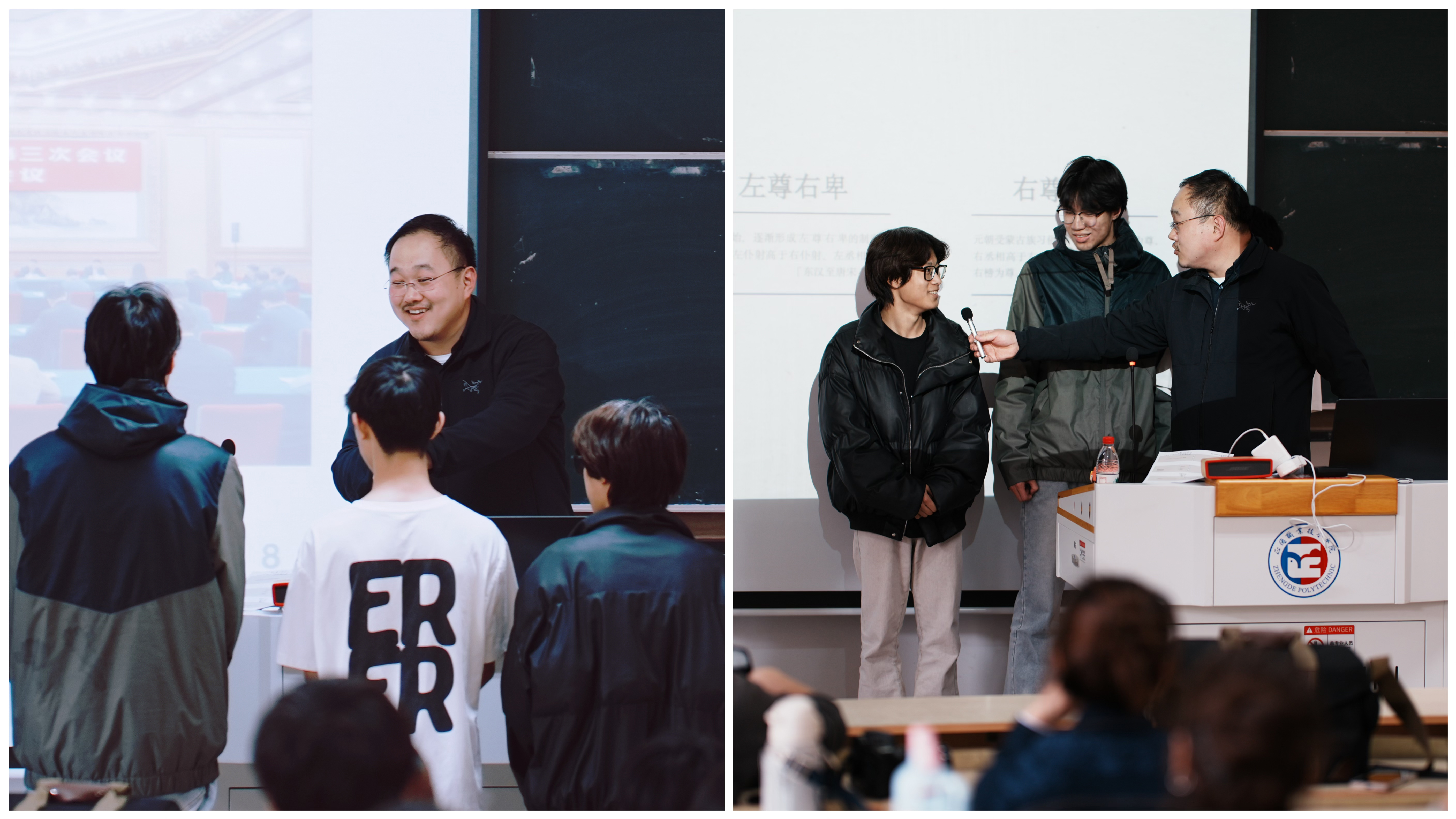 互动环节将讲座氛围推向高潮。同学们踊跃提问,针对如何更好地将重大主题与专业比赛作品融合,以及如何将专业知识与传媒行业就业实际相结合等困惑,与张正老师展开深入探讨。张正老师耐心解答,结合自身的从业经验给出了切实可行的建议,现场气氛热烈非凡。