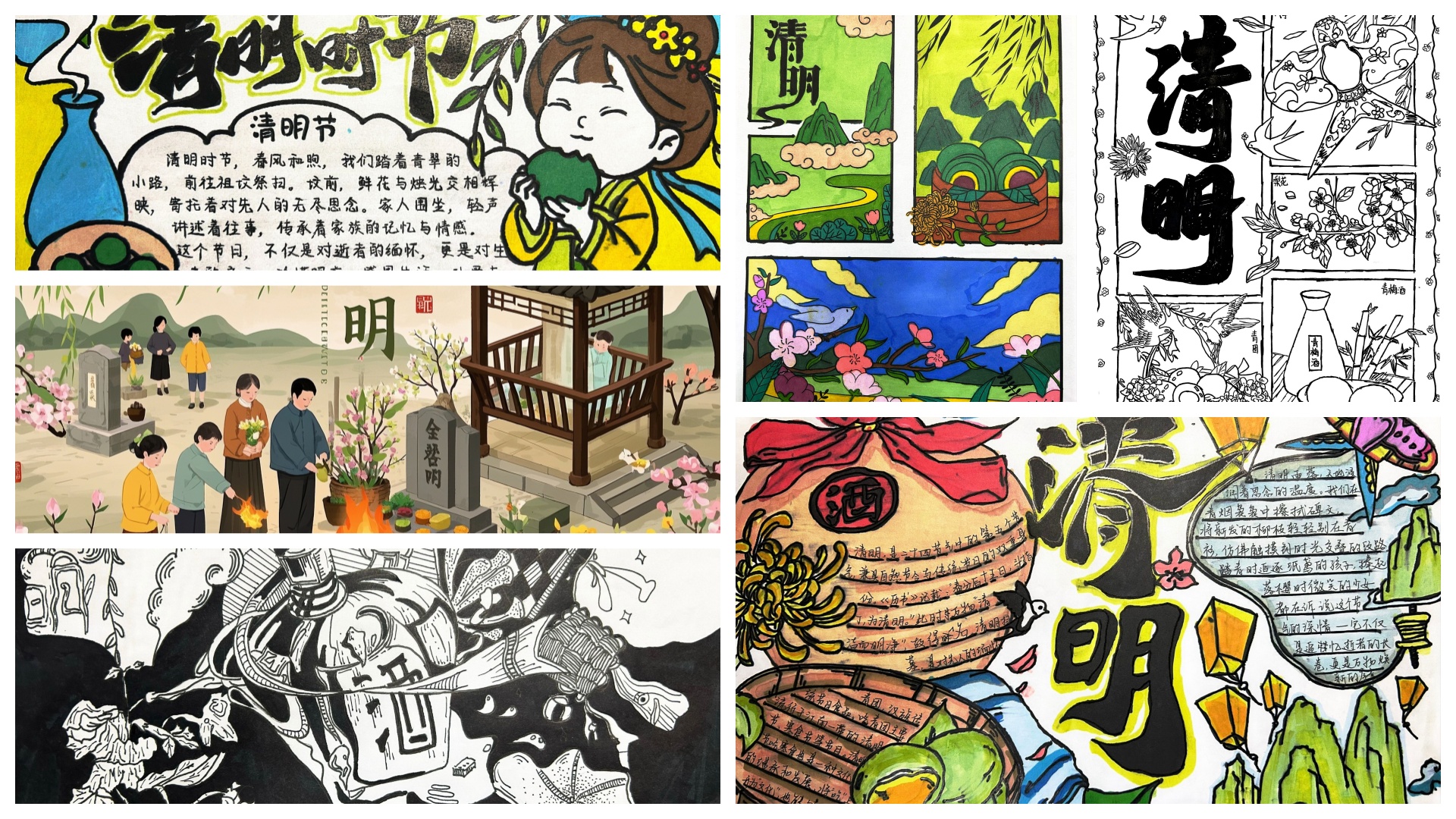 作为系列活动的压轴环节,“绘清明古韵,承文化薪火”主题绘画创作于4月1日至5日持续展开。活动鼓励学生以个人或团队合作形式,用画笔诠释清明意蕴。作品涵盖《祭扫图》的肃穆场景、《春和景明》的盎然生机,以及通过抽象色块表达“生死对话”的哲学思考。截至4月5日中午,活动共收到约15幅涵盖水彩、油画、版画等多种形式的作品。