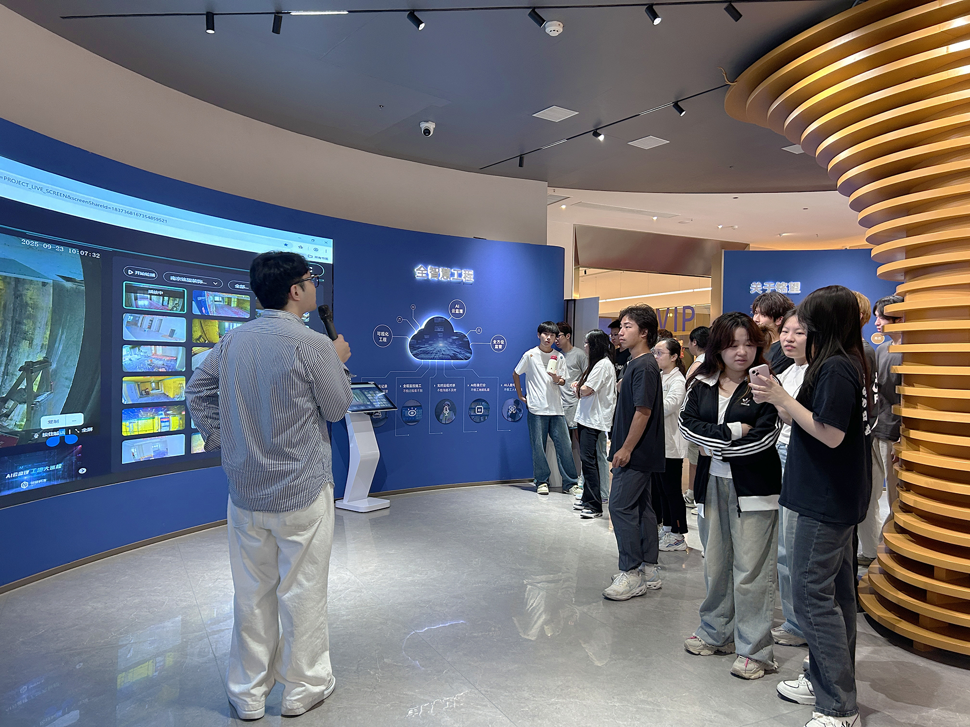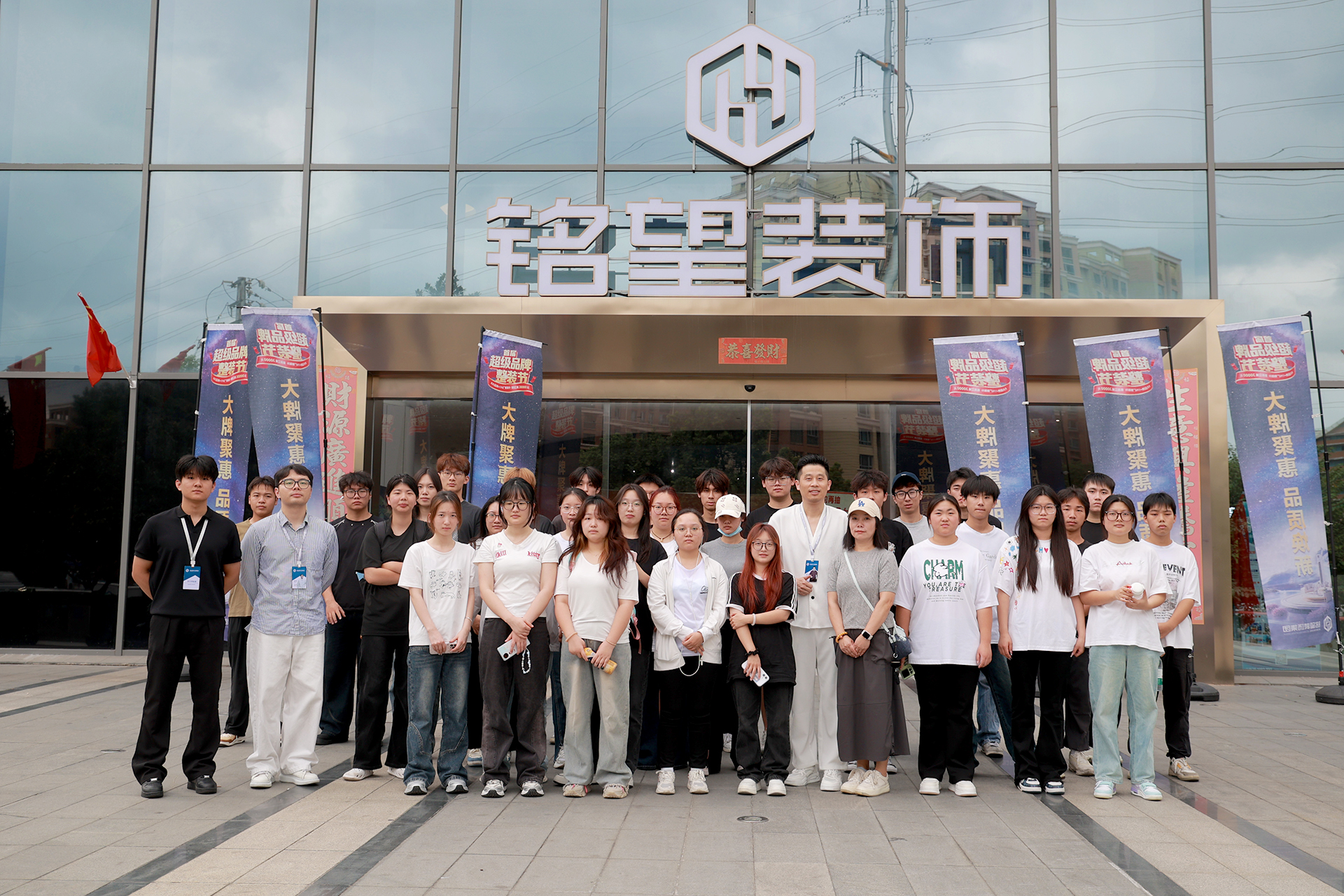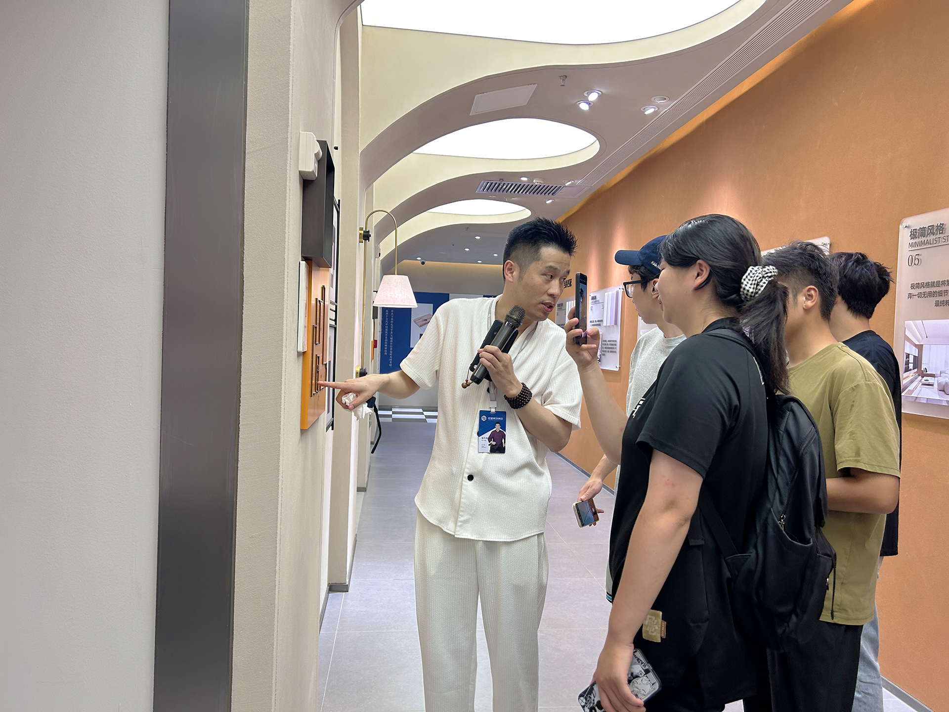 首先铭望装饰的饶主任为同学们详细介绍了公司的户外露出和项目开展情况。铭望装饰立足广大民众的生活需求,专注于不同受众人群,特别是适老化设计的深入研究,为家装业主提供了更多高性价比的产品,实现了产品工厂直供化、设计专业化、产品质量控制专业化、采购物流扁平化、施工安装标准化、价格透明一体化、系统控制时间准时化等。
