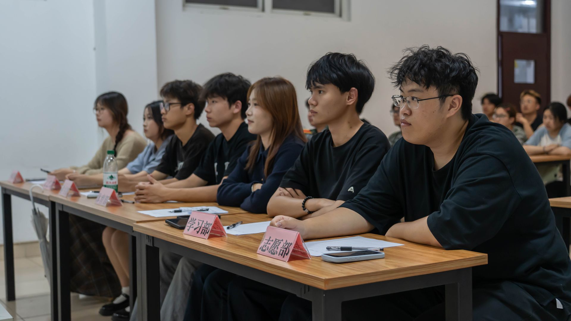 面试环节,新生们根据提前申报的意向部门,有序前往讲台前进行面试。面试过程中,同学们逐一进行了简短的自我介绍,并阐述了加入学生会的初衷、自身优势以及对部门工作的设想。各部门负责人则围绕沟通能力、团队意识、责任心、创新思维等方面对面试同学进行了提问和考察。现场气氛既严肃又活泼,新生们或从容不迫,或略带紧张,但都展现出了积极向上的精神风貌和加入学生会的真诚愿望。